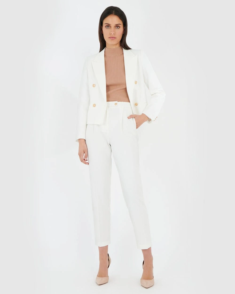 For a polished and professional style, the Sasha Pants by Forcast are the perfect pick. Whether it’s at the desk or on a date, this style has you covered, featuring a high waist design with gold button detail and straight leg silhouette. Pair with the matching Sasha Double Breasted Jacket or complete the set with the Sasha Mini Skirt for a classic suit set with a twist.