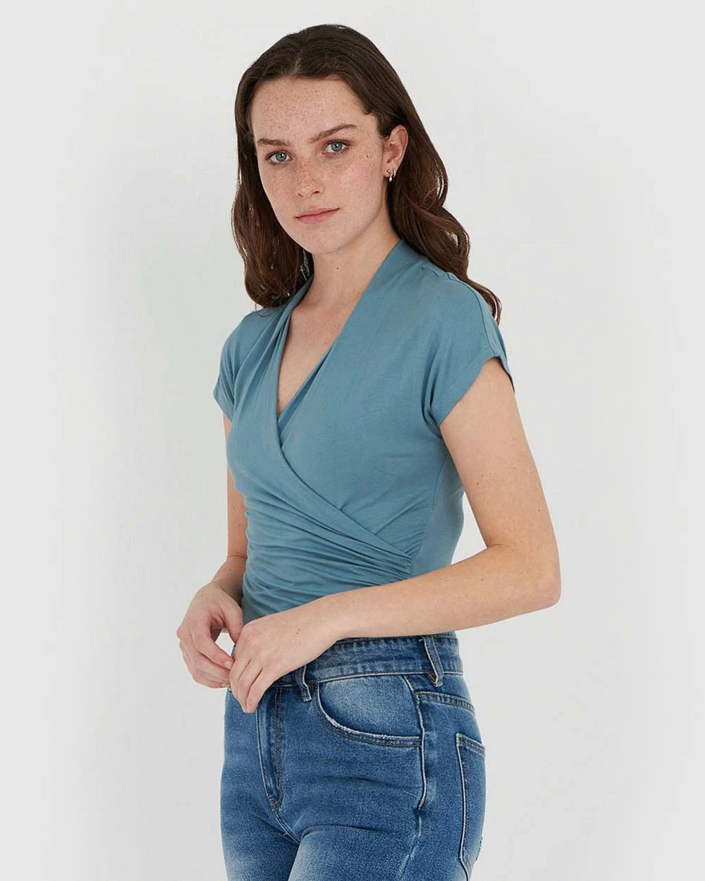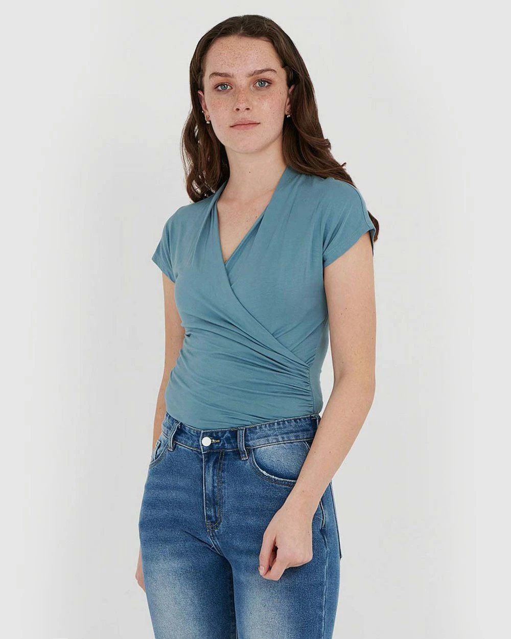 The Senna Cross Over Top by Forcast is a must have this season. A cross over design in a lightweight stretch material, and in a fitted silhouette, this style is both chic and versatile. For a polished look to take you from desk to dinner, team it with a classic pencil skirt or a slim fit pants.