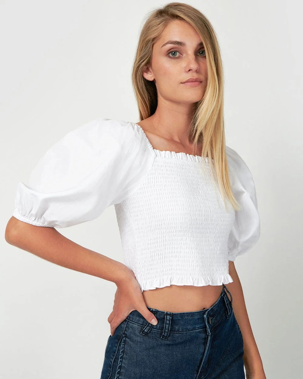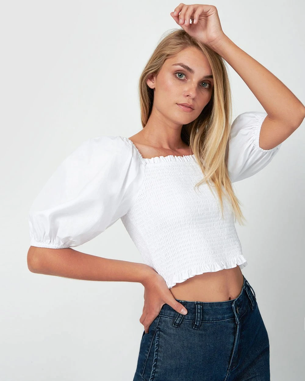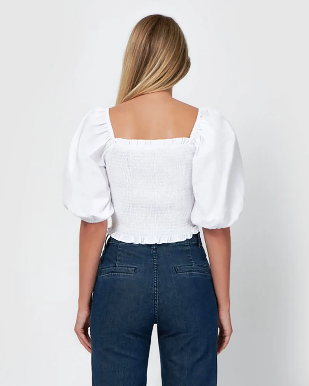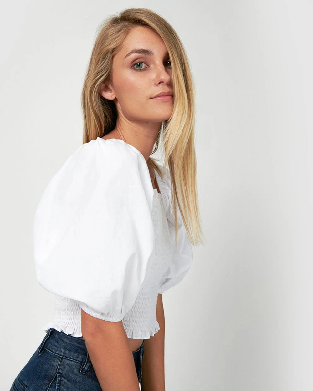 Forcast Serena Shirred Balloon Sleeve Blouse Ivory