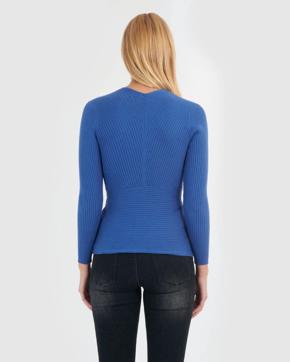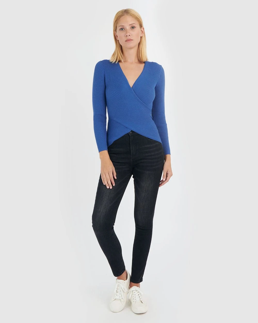 A chic addition to your style selection, the Serenity Crossover Knit by Forcast is not to be missed this season. A classic long sleeve and v-neckline design, featuring a crossover front and stretched ribbed textured fabrication that is comfortable, cosy and elegant – perfect for all-day wear. Go from desk to date and pair with slim pants and heels.