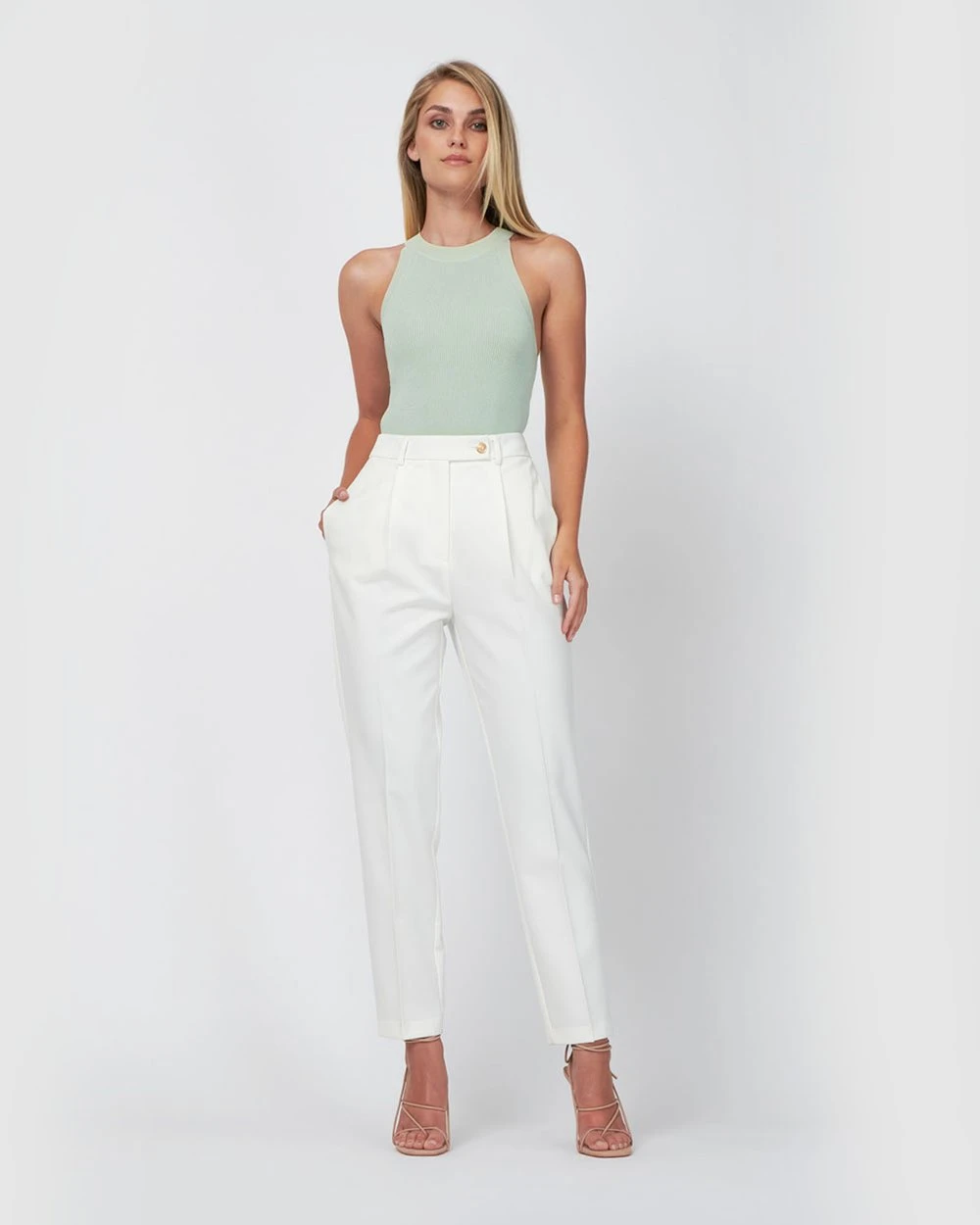 Simply sophisticated, the Skye Halter Neck Knit Top by Forcast is a closet must have this season. With its textured knit, halter neckline and fitted silhouette, this modern and minimal design is perfect for creating balance when paired with a statement piece. Tuck into a wide leg pant for a fashion-forward office outfit.