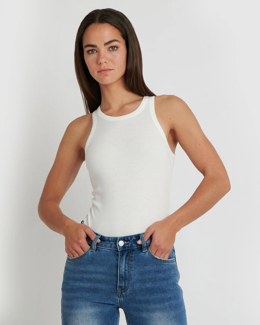 The Tamara Tank by Forcast is the elevated basic top you are guaranteed to love with its comfortable, fitted style and soft ribbed cotton texture. Featuring the ultra-modern round neckline with racer back, making it the perfect top to layer with. Pair with jeans or a mini skirt to nail the effortlessly glamorous look.
