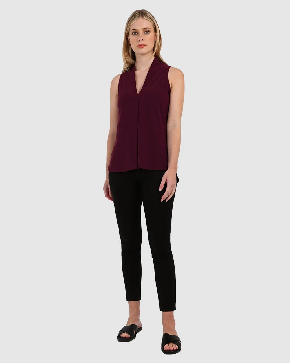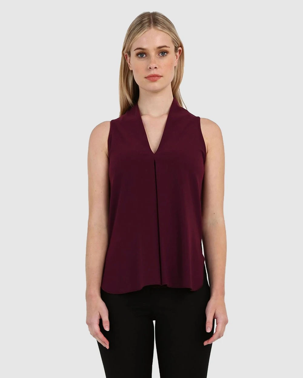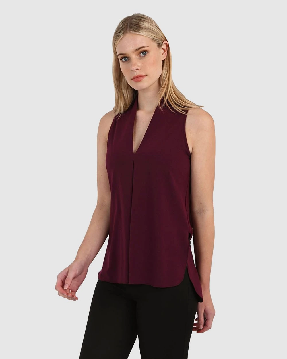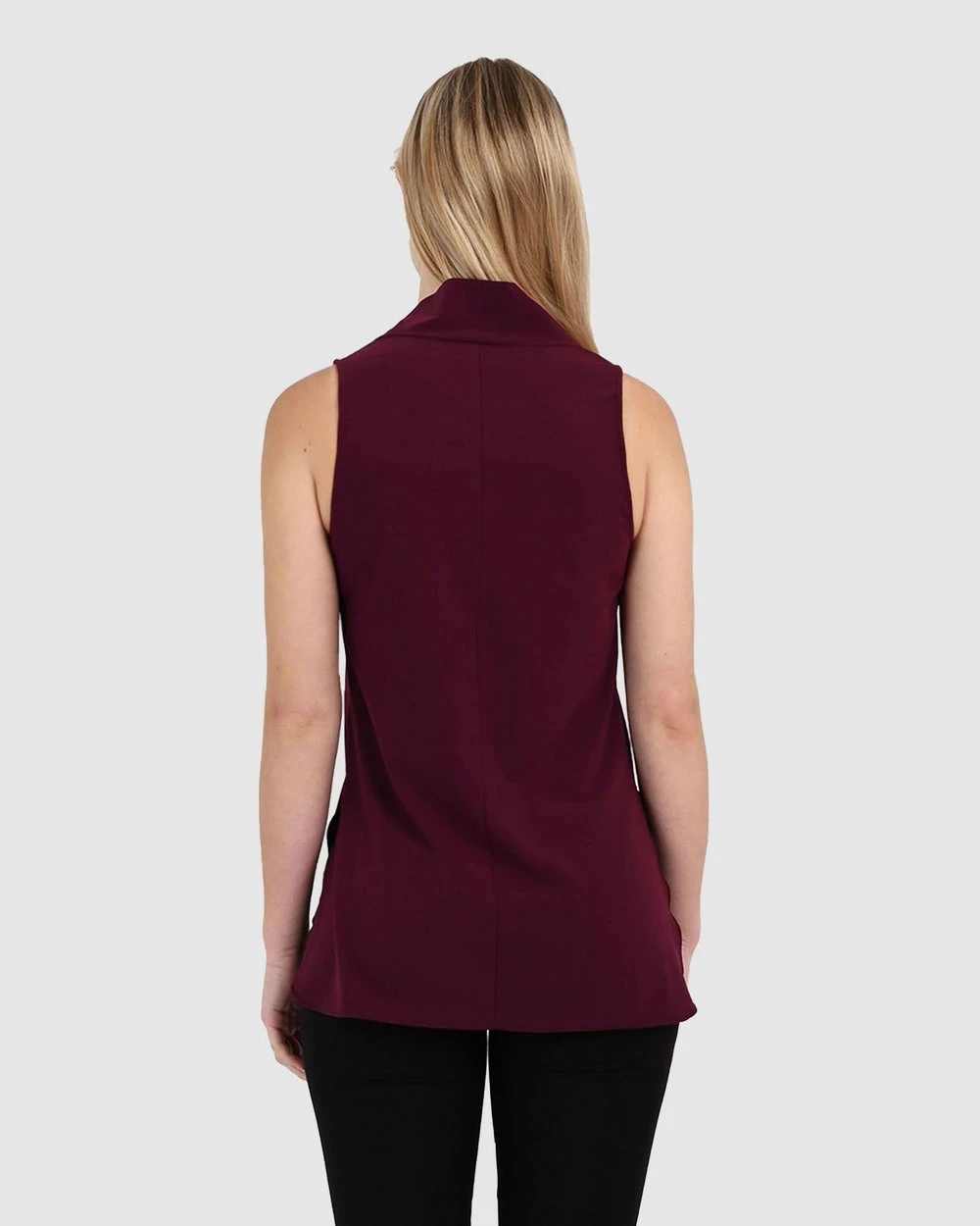 – Sleeveless silhouette with a relaxed fit