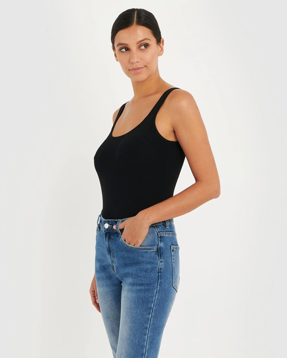 – Scoop neckline