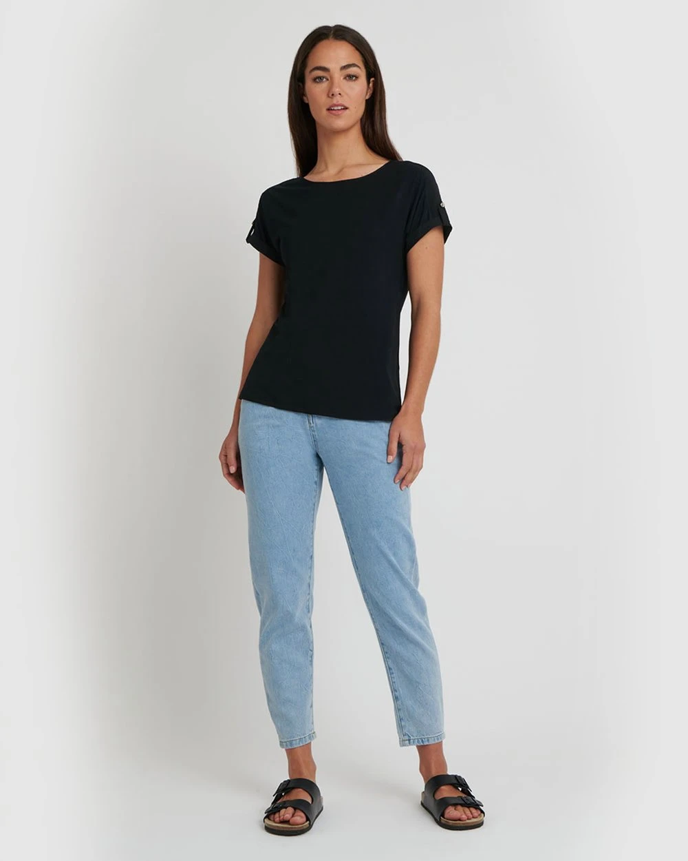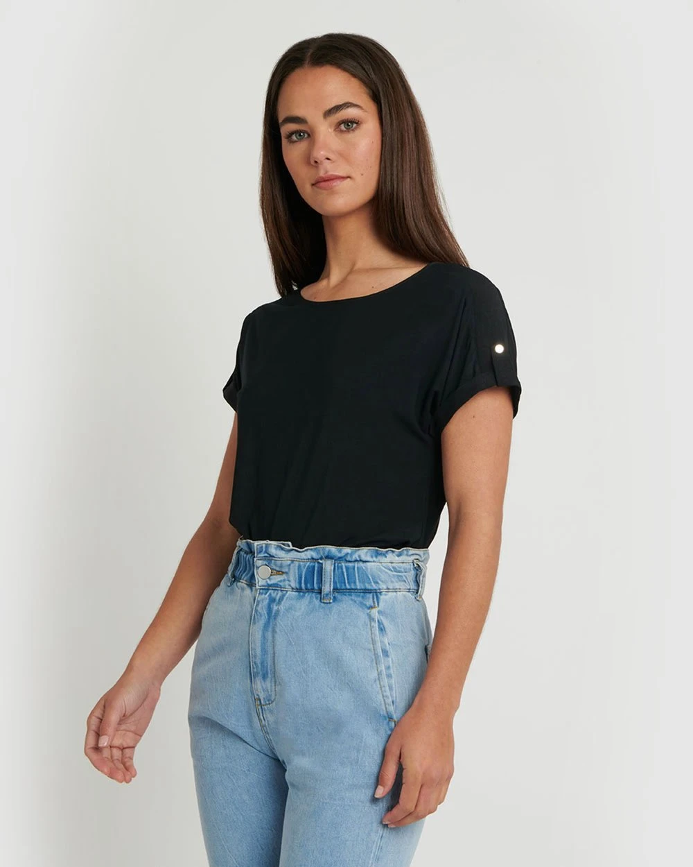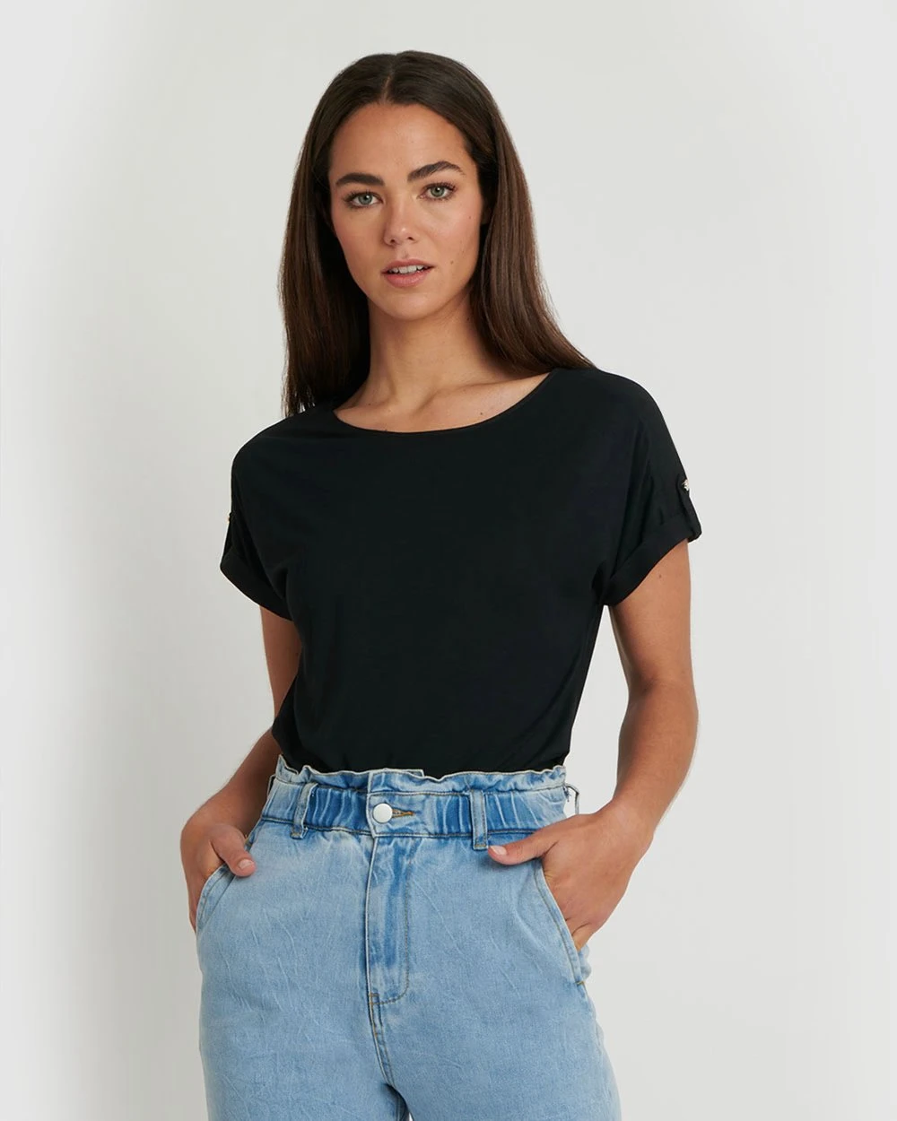 – Short sleeves with button detail
