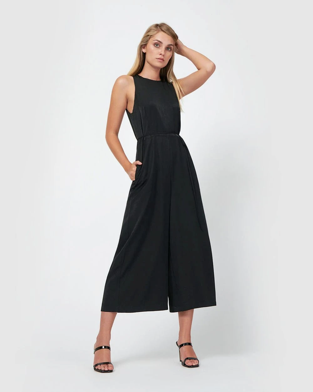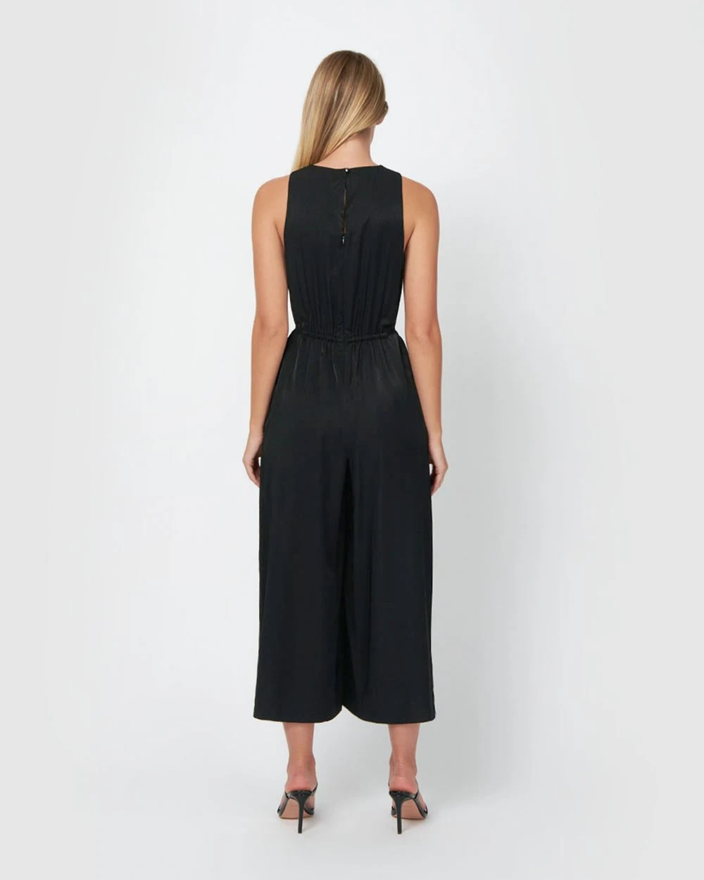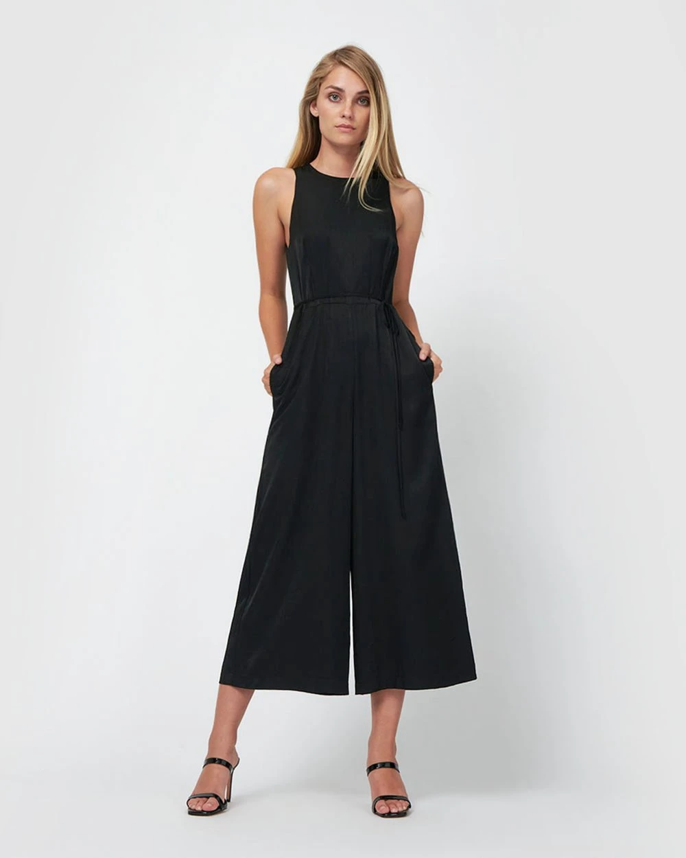 Arrive at work in style with the Vida Relaxed Drawstring Jumpsuit by Forcast. A simple sophisticated design, featuring relaxed wide leg silhouette and tie waist for added figure, this design is highly versatile. With a quick shoe change it will take you from work to the weekend looking simply chic.