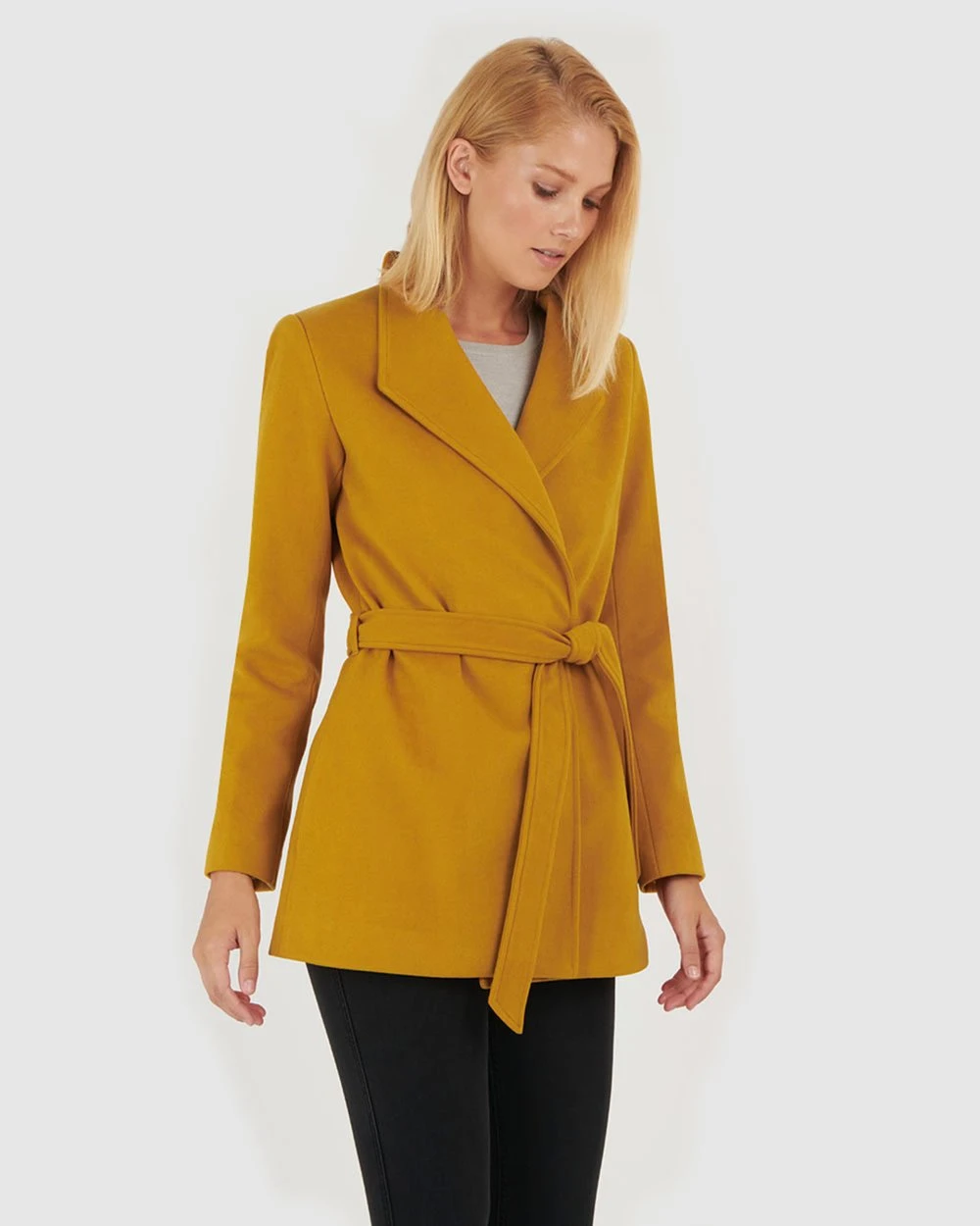 Layer up in the Willow Tie Waist Coat by Forcast. With its cross over style and tie waist belt, this design is sure to give your outfit a polished finish. For a chic and trendy style to take you from desk to date, layer over a dress and finish with boots.