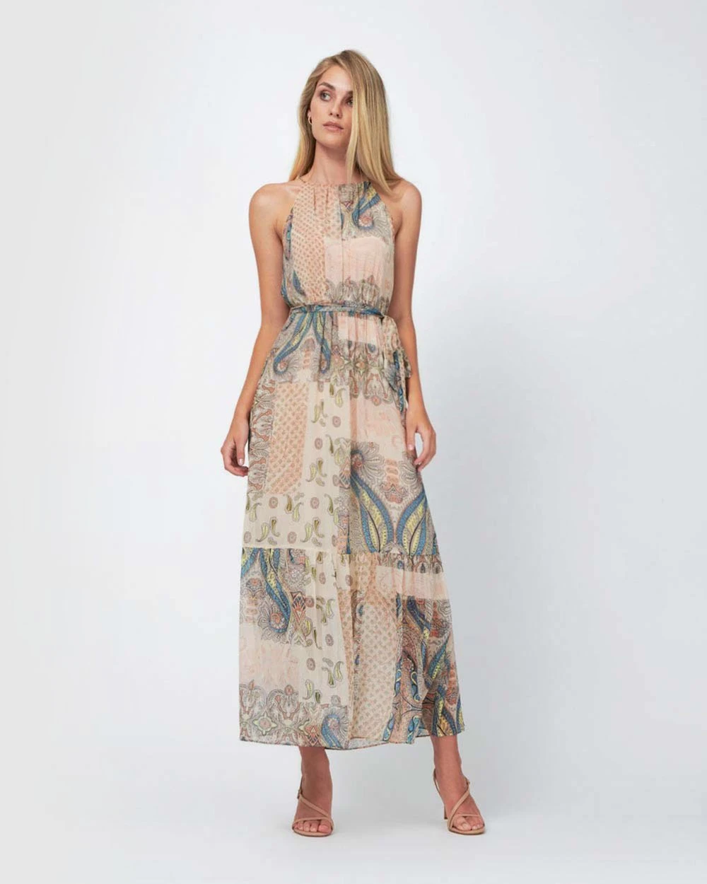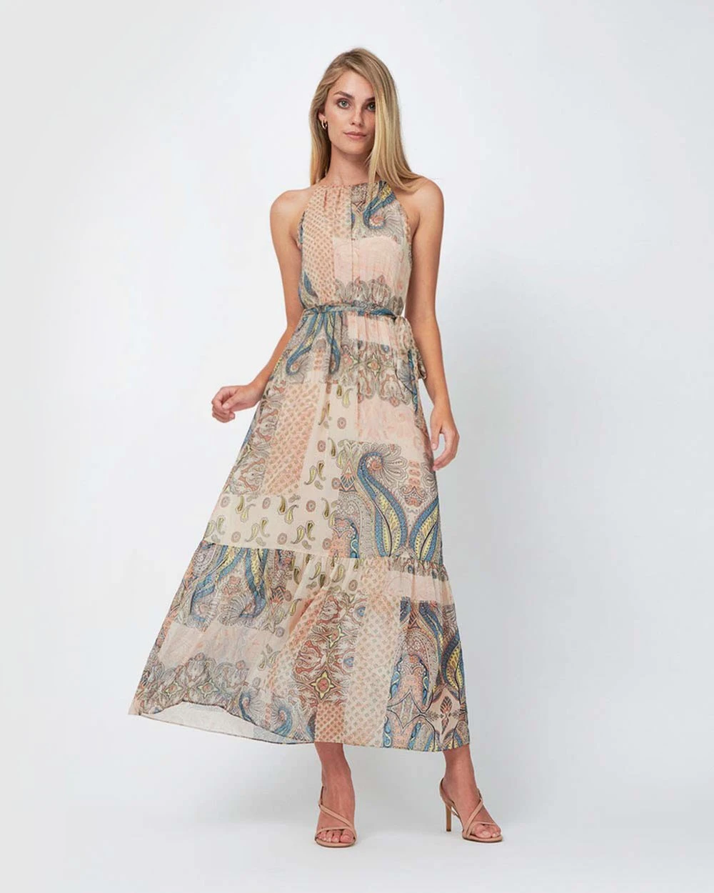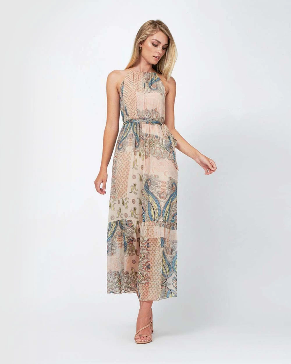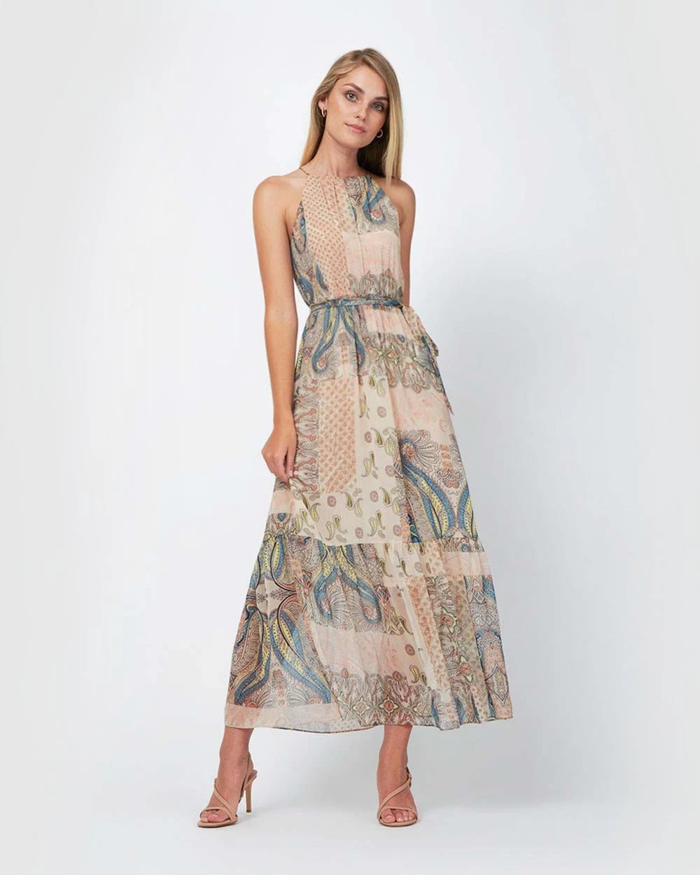 Add some classic bohemian style to your closet with the Yolanda halter Neck Tie Waist Dress by Forcast. With its paisley print, and a silhouette that flatters the figure, this is the perfect pick for day or night.