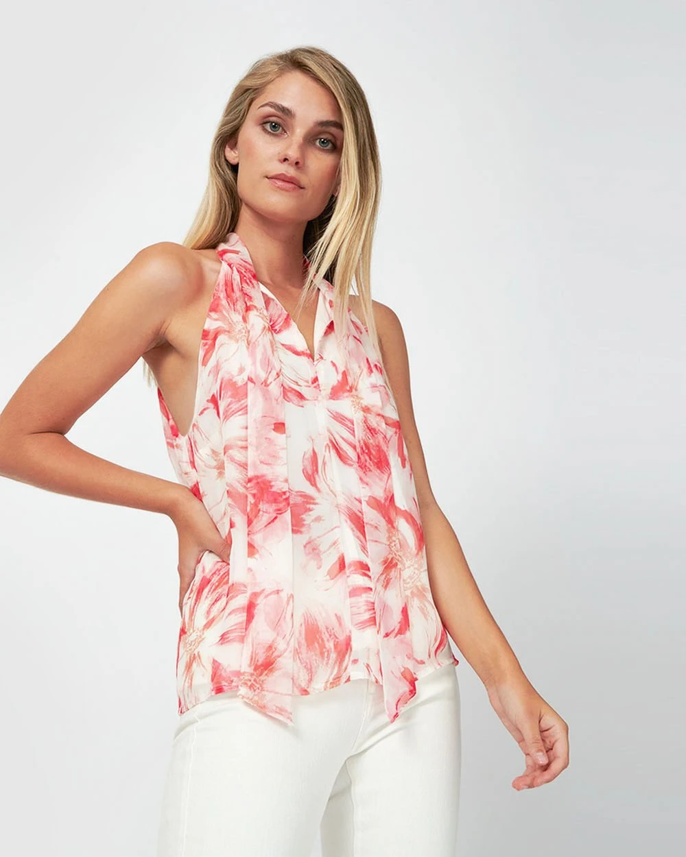 Feel gorgeous in florals with the Yvonne Tie Up Halter Neck Blouse by Forcast. Designed in a diversely flattering tie front halter, this lightweight piece will get you through a warm work day looking polished and elegant. Pair it with a pair of classic slim pants and pumps for a balanced outfit.