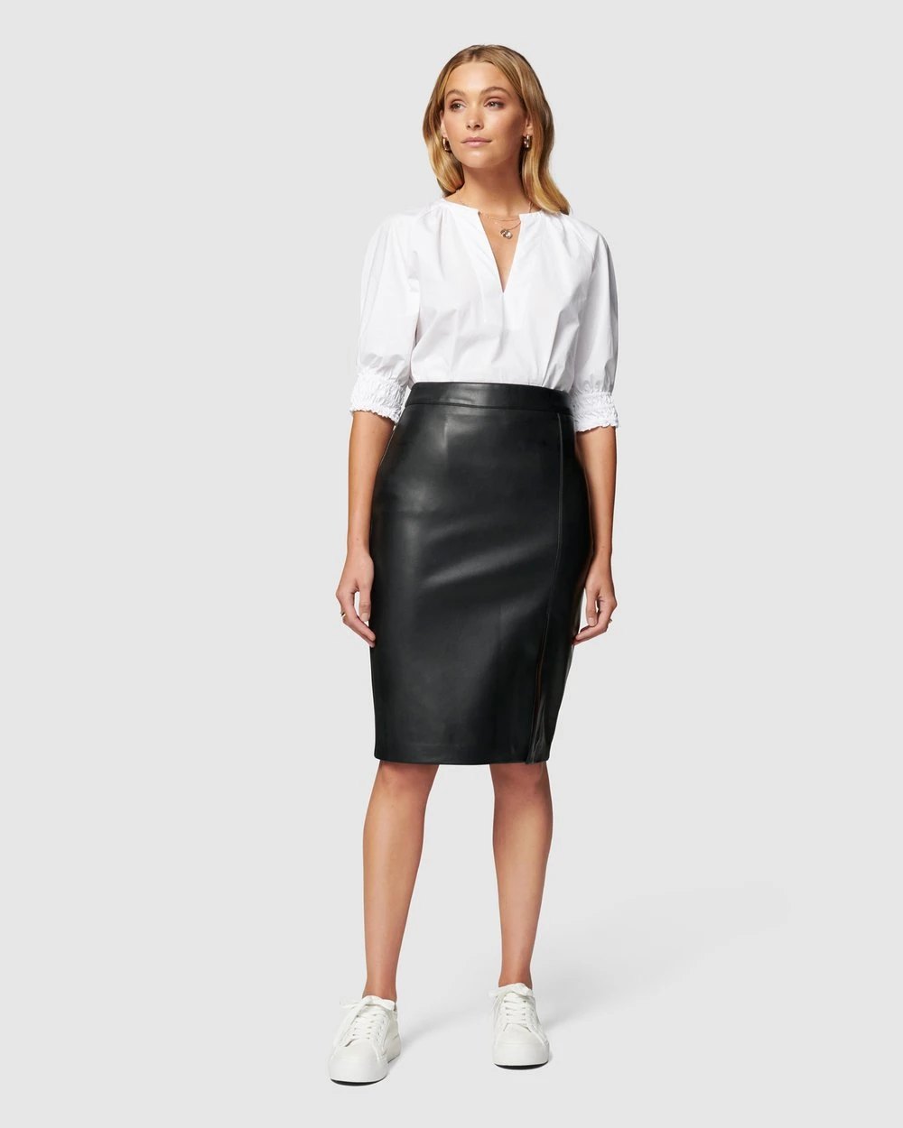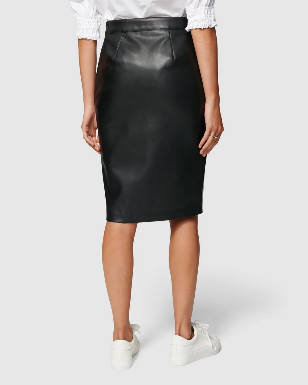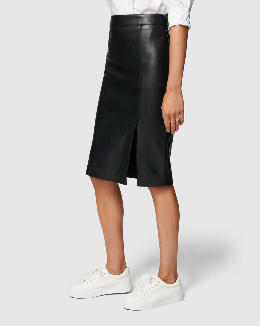 The Emilia Vegan Leather Split Midi Skirt from Forever New is a must-have addition to your staple wardrobe. Wear yours with jeans and a tee, or layer over a floral dress for edgy feminine appeal.