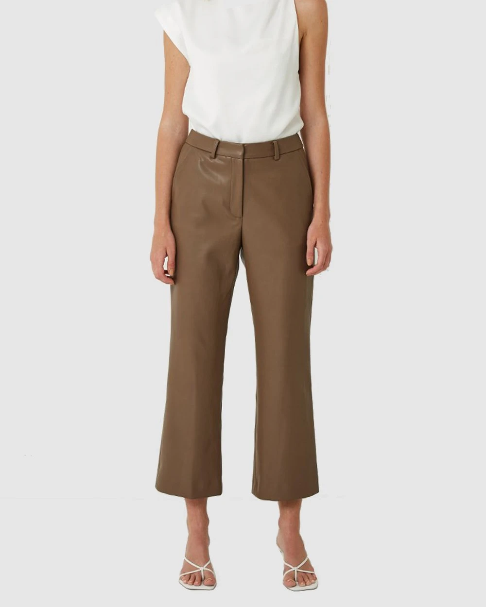 The Alex Cropped Vegan Leather Straight-Leg Paints are a Friend of Audrey wardrobe staple. The straight leg fit finishes just on the ankle, finished in a supple vegan leather quality. The pants feature a waistband with belt loops and functional front and back pockets.
