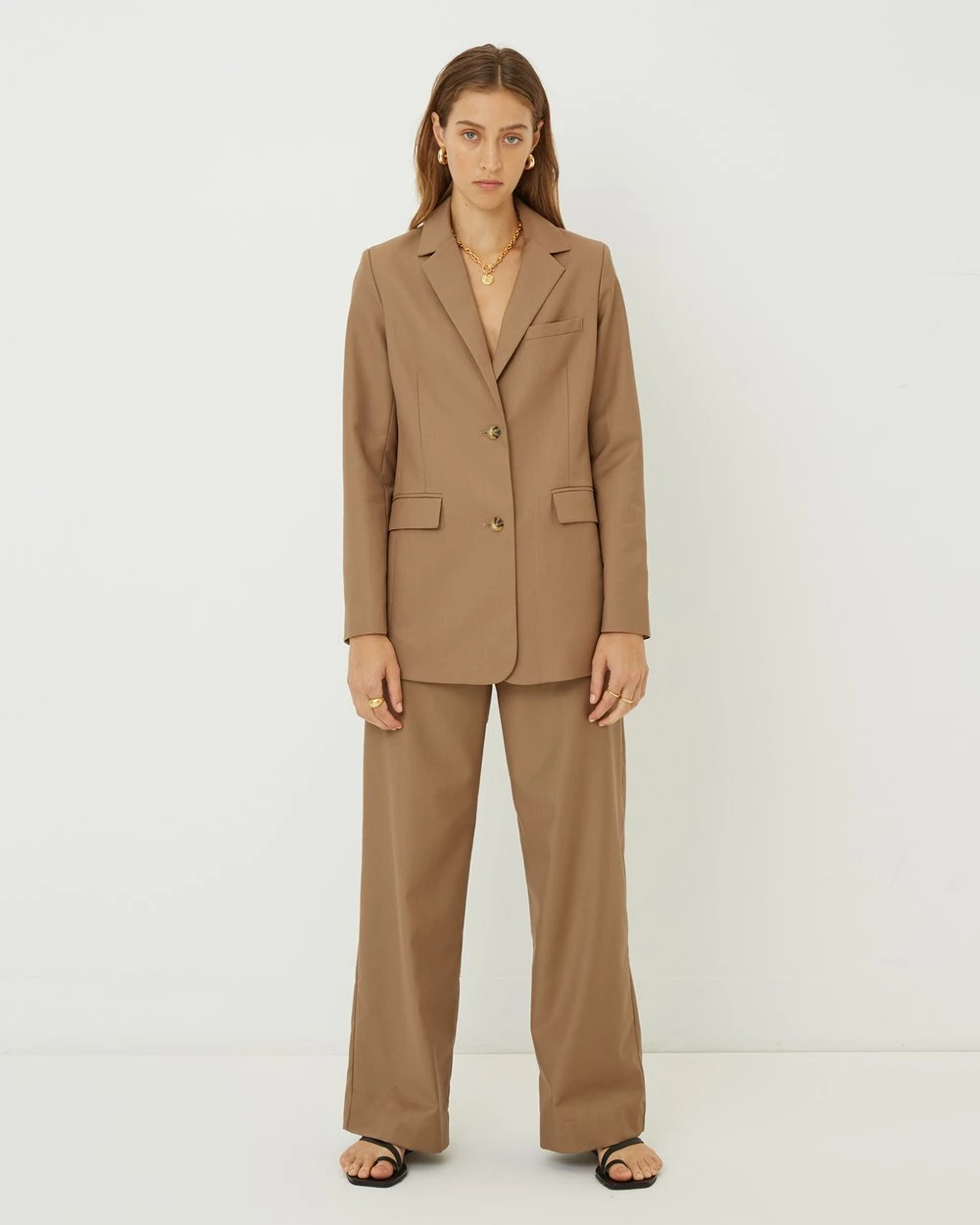 Unleash your inner girl-boss with the Frankie Wide-Leg Trousers from Friend of Audrey. Reminiscent of classic men’s tailoring with it’s full length, wide-leg silhouette, this ultra versatile pant will instantly elevate any shirt or sweater in y our wardrobe. Wear with matching Frankie Oversized Blazer for a strong statement look.