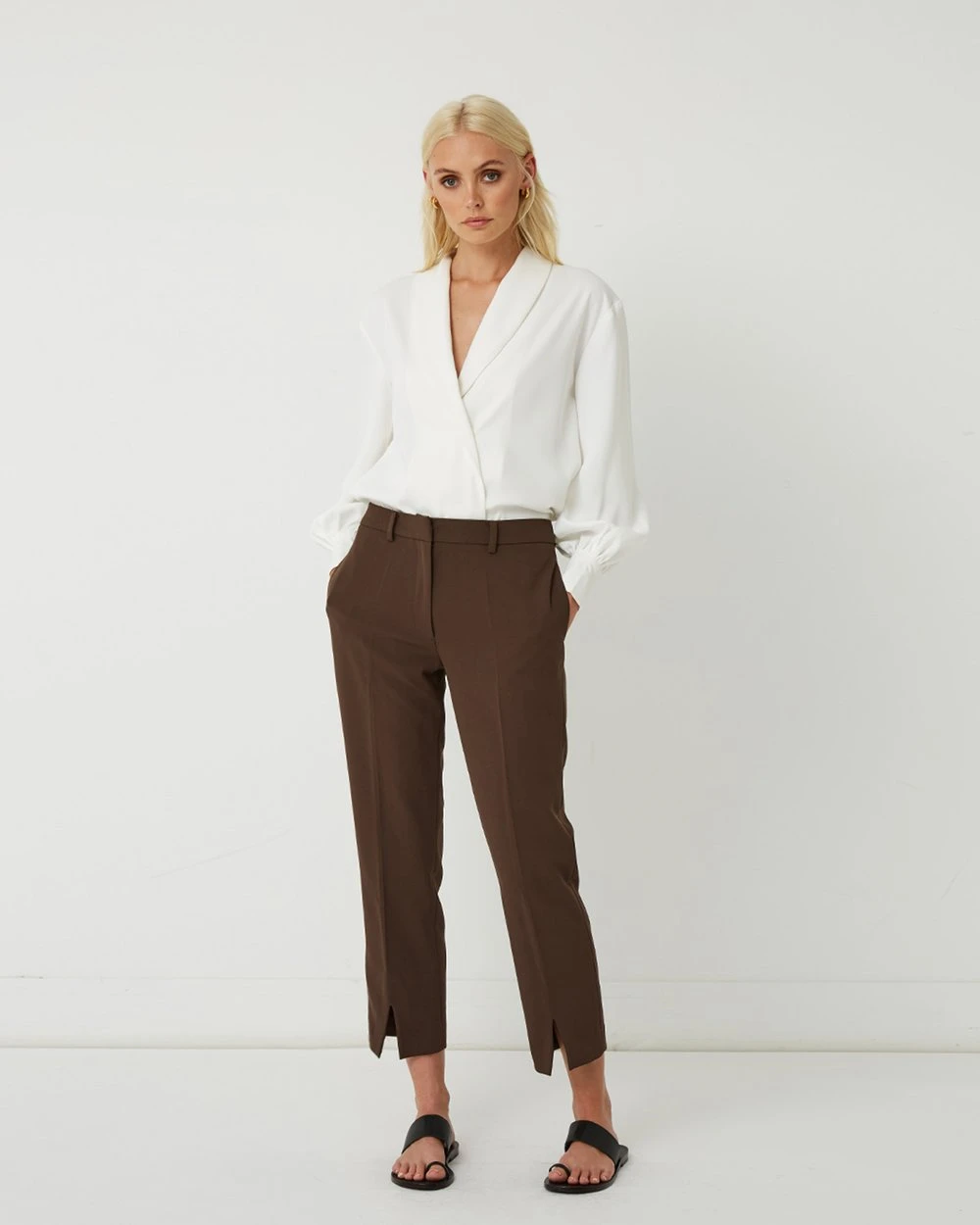 The Jones Split Tapered Pants from Friend of Audrey are a tapered fit with innovative hemline splits at the centre front. Thes pants feture side pockets and are a slim, flattering fit. They sit just above the ankle and can be styled with heels or sandals.