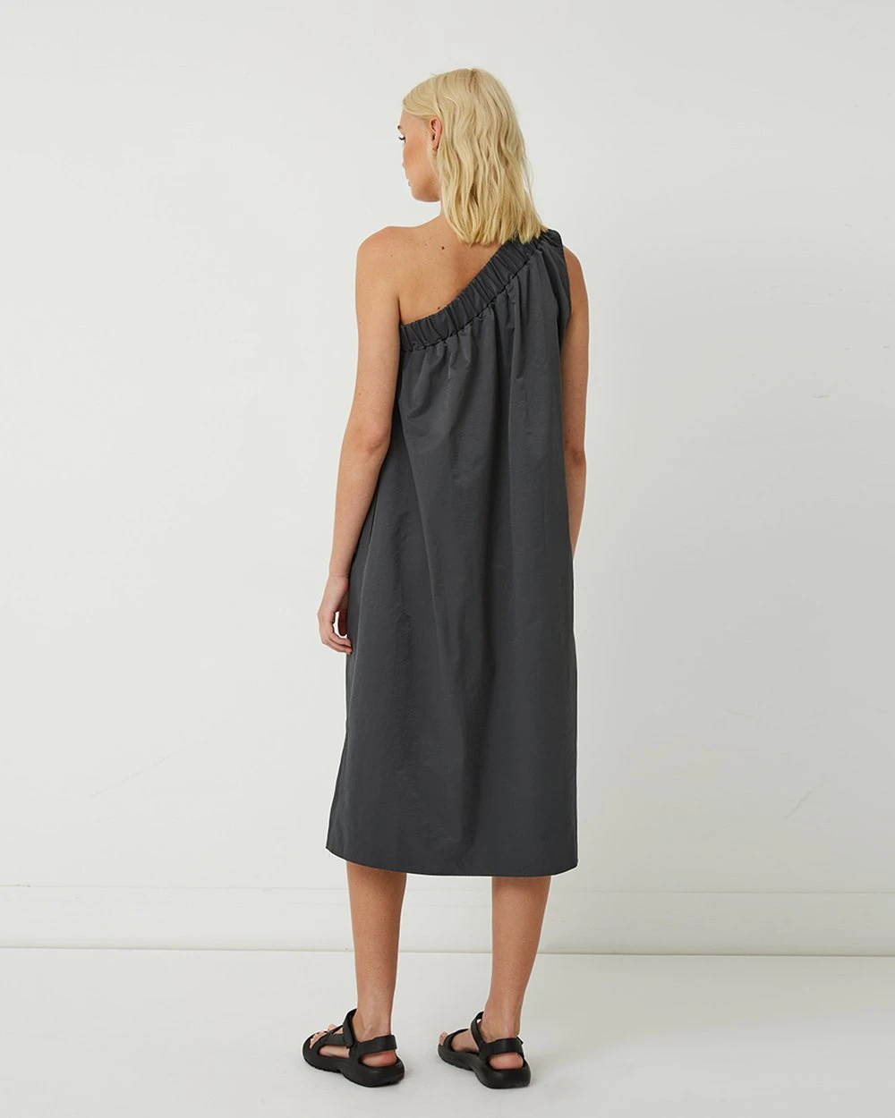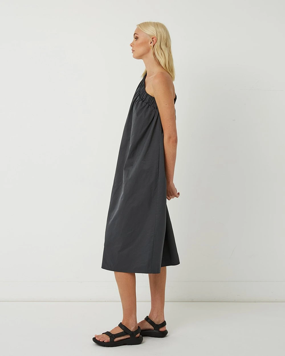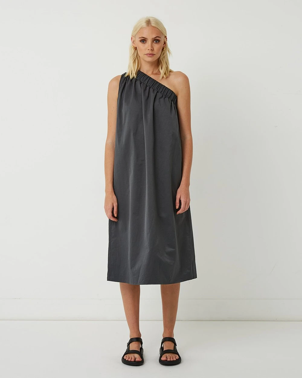 The Lola One Shoulder Cotton-Blend Dress from Friend of Audrey is a relaxed, one shoulder dress with a flattering ruched neckband. An easy slip on style, this relaxed Summer dress is so comfortable and easy to wear. Featuring side pockets and made in a cotton-blend fabrication, this is the dress you need for Summer.