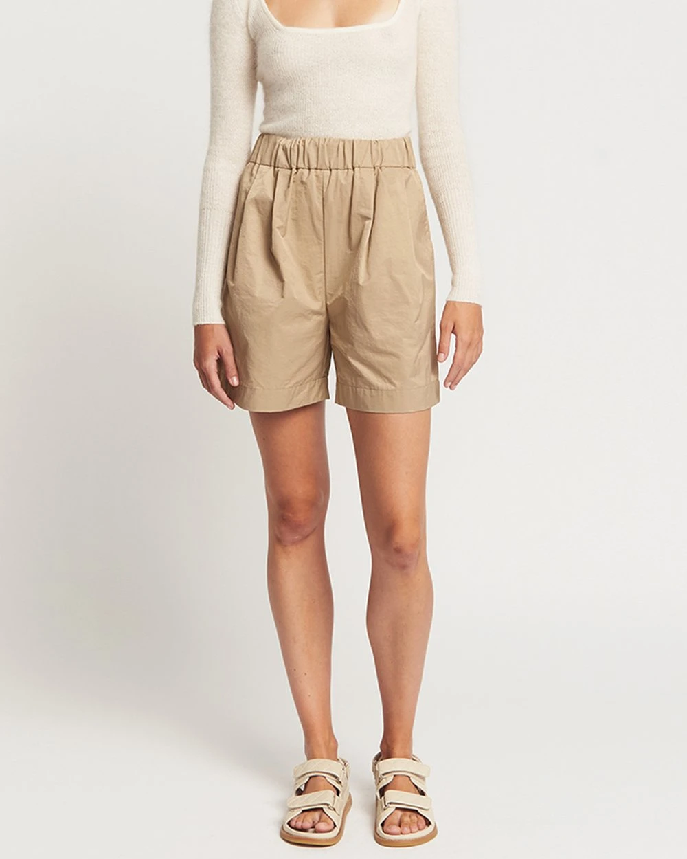 Look to the Huntington Shorts by FRIEND of AUDREY for balmy weekends with its soft cotton-blend, versatile neutral palette and high-waisted fit.