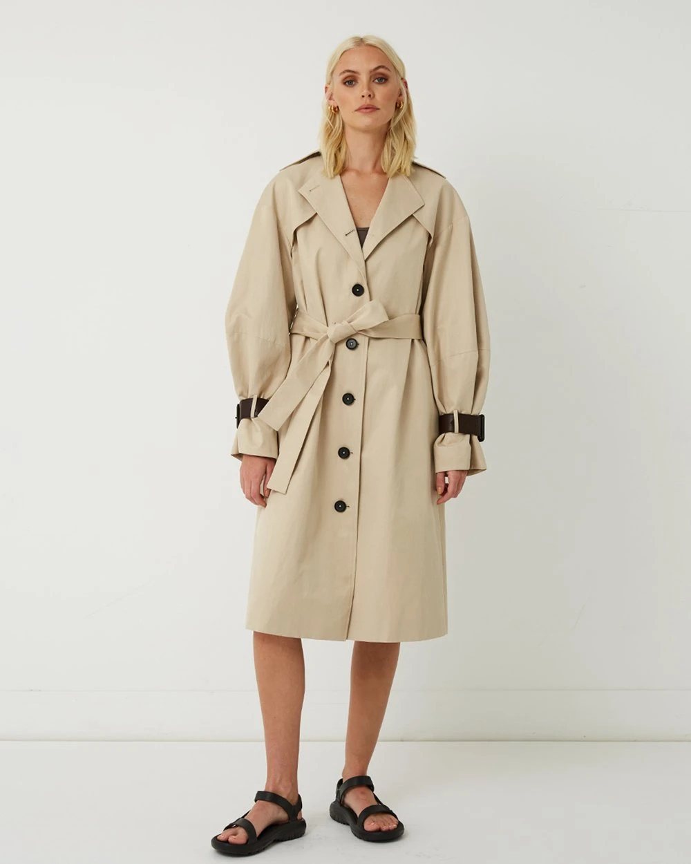 Friend of Audrey's Marle Oversized Cotton-Blend Trench Coat is an update to the classic trench. Made in a luxurious cotton-blend fabrication, it's all about the details in this piece. Featuring a contrast buckle and tab to allow for sleeves to be adjusted, contrasting black designer buttons and wide balloon sleeves. This trench coat will add an element of cool to any outfit and is the perfect wardrobe investment piece.