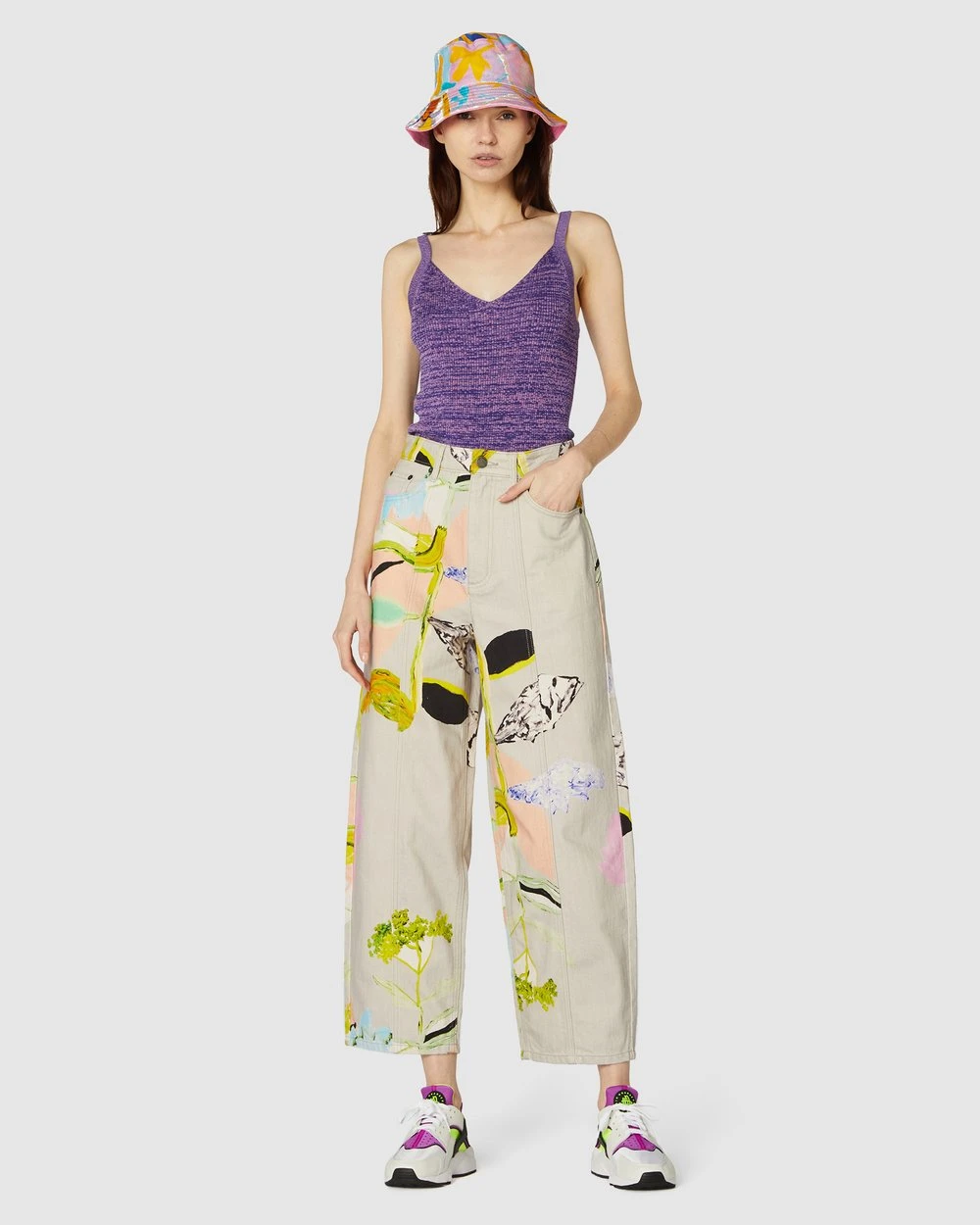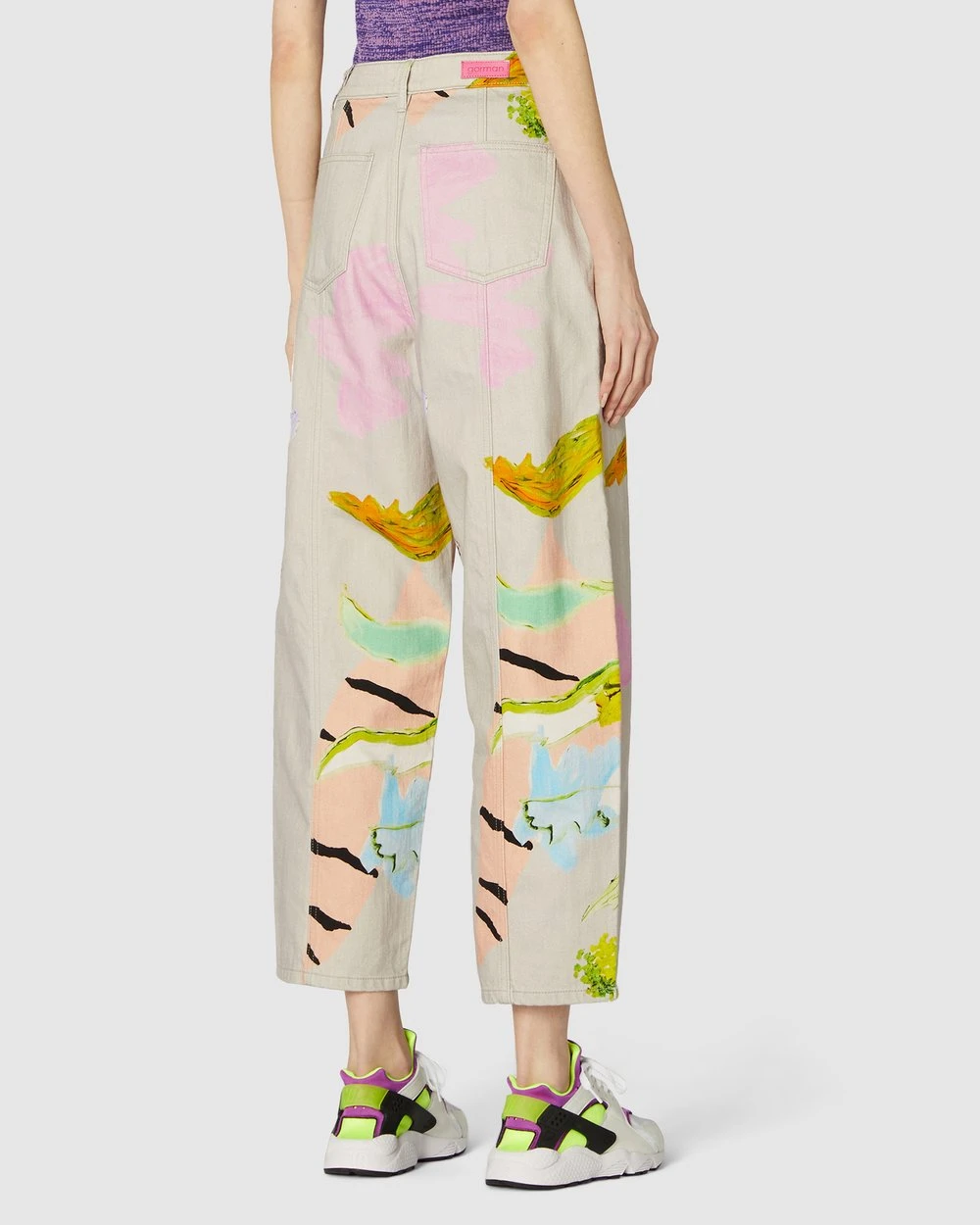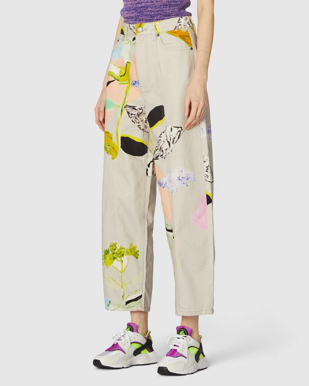 The Floret Jeans by Gorman are printed organic cotton jeans. This pair of jeans has a tapered leg cut, organic cotton denim twill fabrication, high-waisted rise, front slanted pockets, front leg seam shaping, a fitted waitband with belt loops, button fly front opening and back patch pockets.