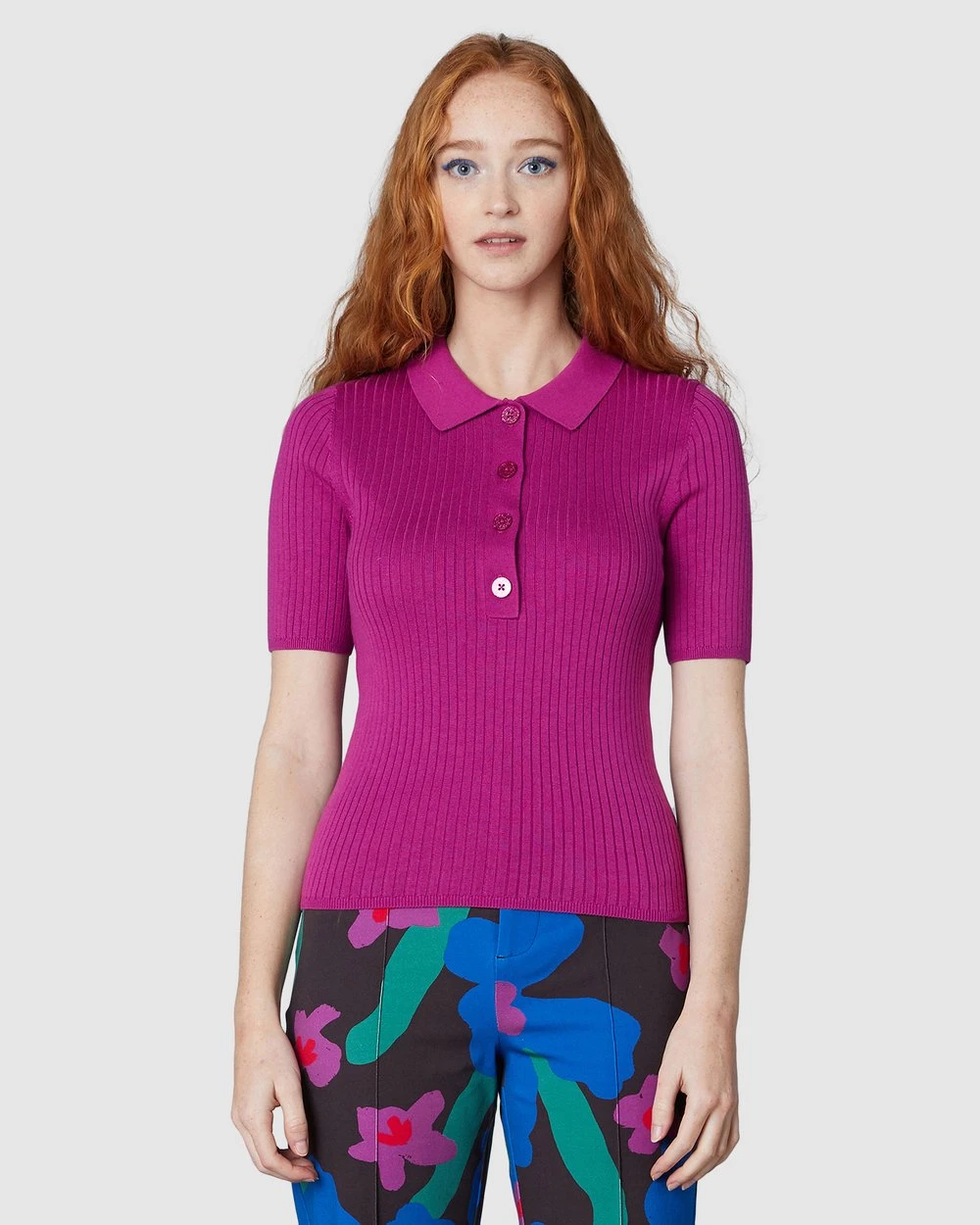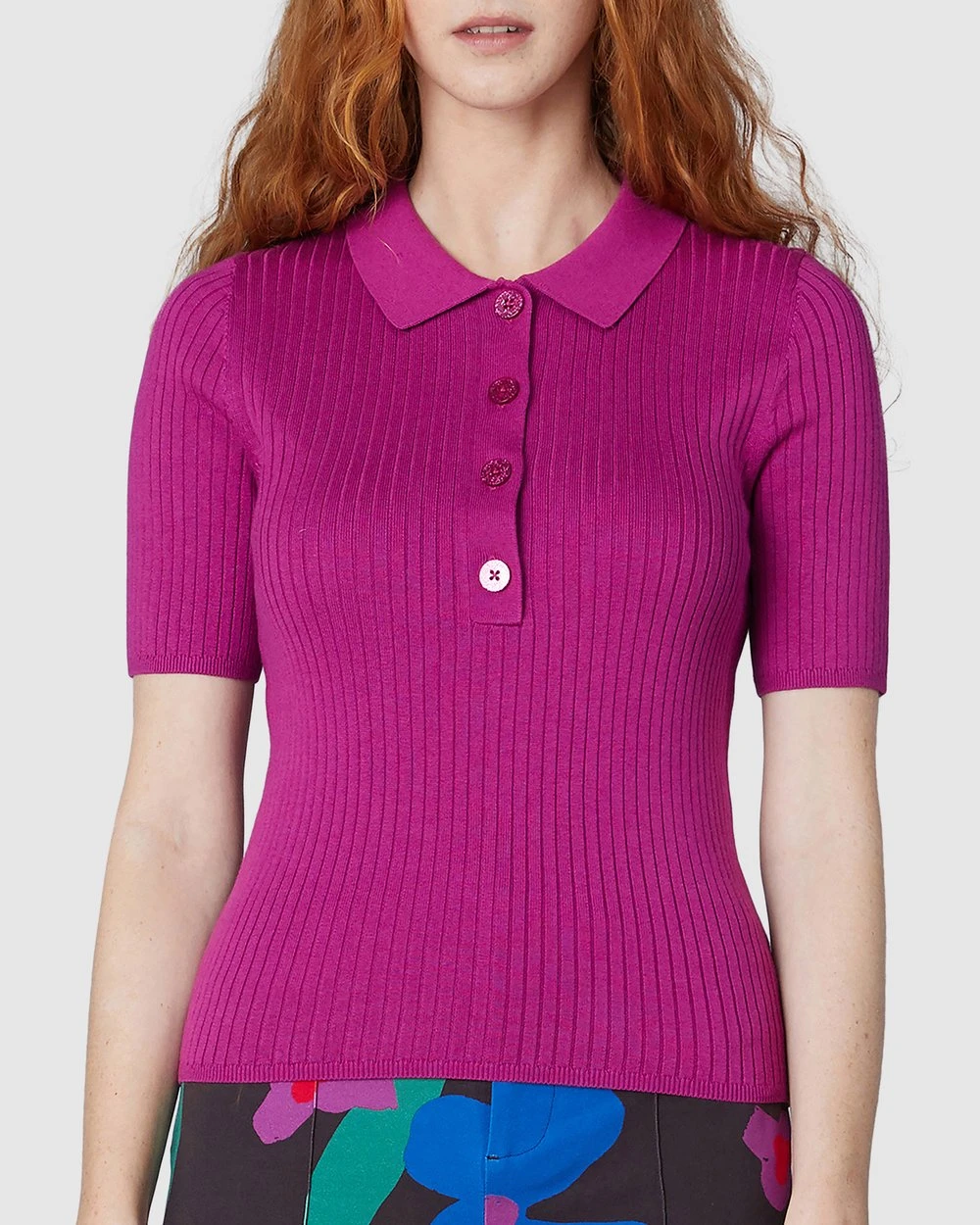 The Polo Club Knit Top by Gorman is an everyday cotton blend knit top. This top has short sleeves, a ribbed collar, button front placket opening and bci cotton blend fabrication.