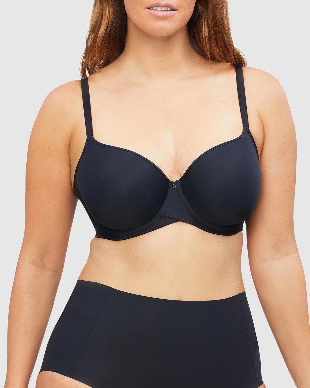 Our model wears a size 14E bra. She is 177cm tall with a 103cm chest, a 78cm waist and 108cm hips.