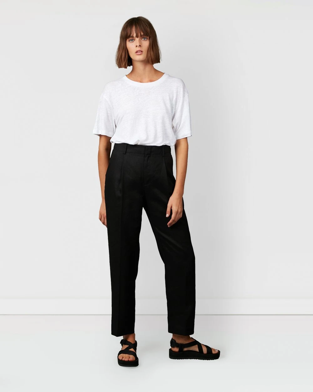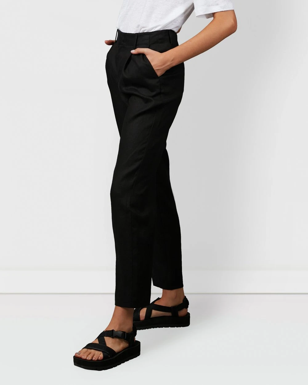 Designed as a minimal and classic piece, the Sharp Tailored Linen Pants by Nique exudes sophistication. Front pleats create a clean and defined shape, sculpting a tailored fit from comfortable linen. Perfect as a trans-seasonal staple, wear this style with the Black Miro Tailored Linen Jacket.