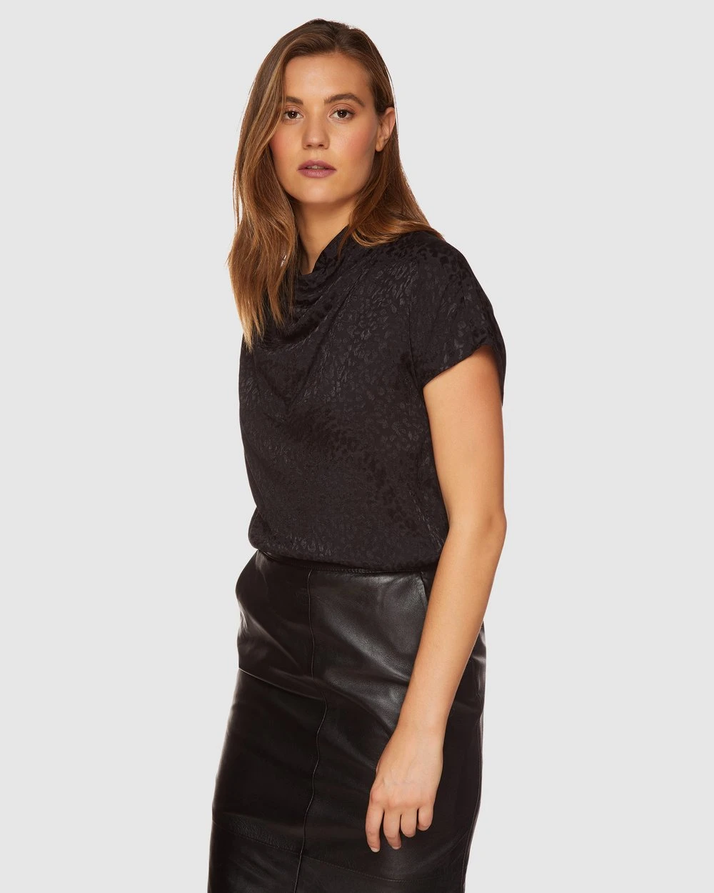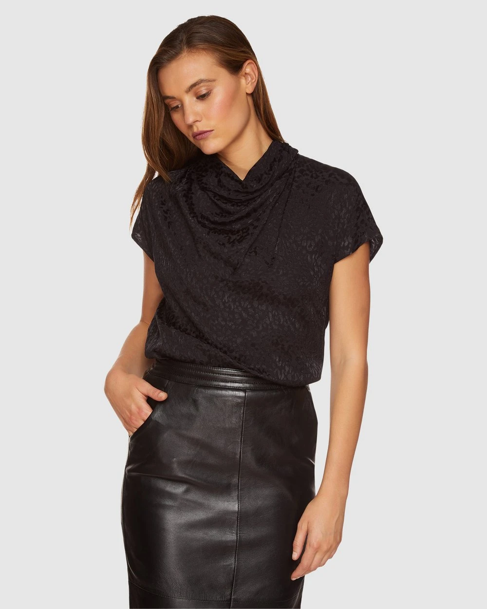The graceful and modern Oxford Alice Cowl Neck Top will take you from desk to dinner with ease. This relaxed fit top is crafted from a luxurious textured animal print fabric that drapes elegantly throughout a feature cowl neckline. Wear yours with a long leather skirt and boots for a fresh look the office.