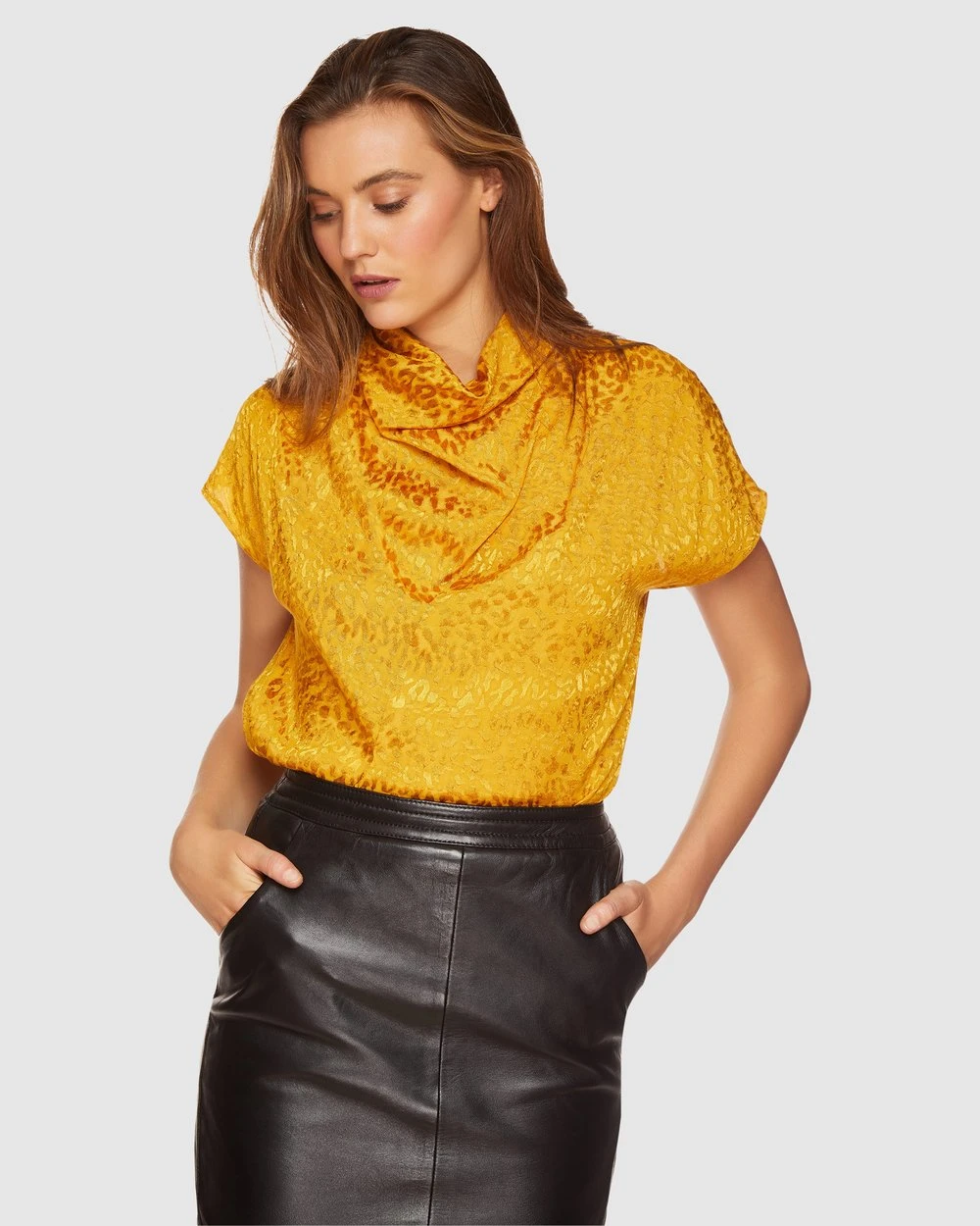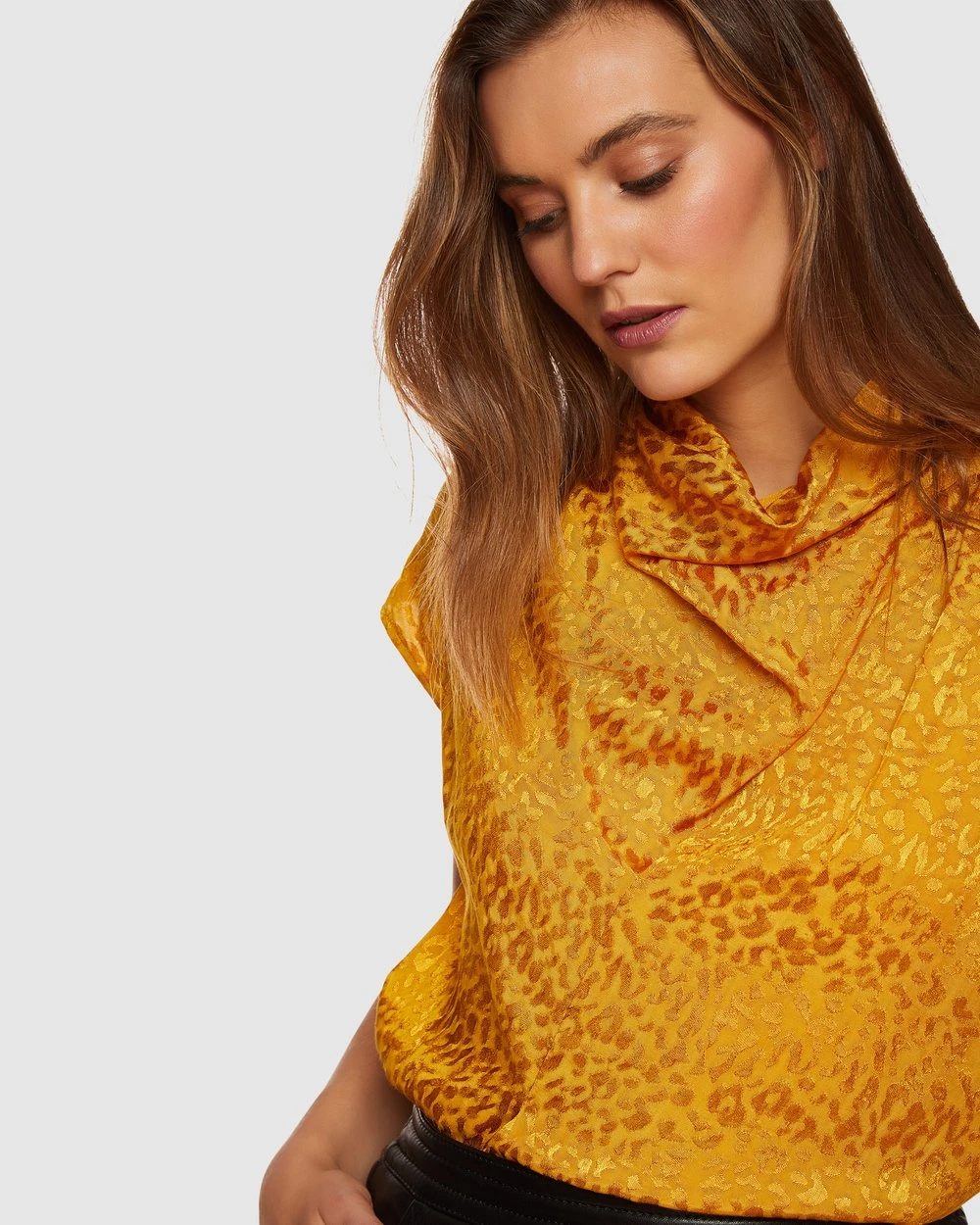 The graceful and modern Oxford Alice Cowl Neck Top will take you from desk to dinner with ease. This relaxed fit top is crafted from a luxurious textured animal print fabric that drapes elegantly throughout a feature cowl neckline. Wear yours with a long leather skirt and boots for a fresh look the office.