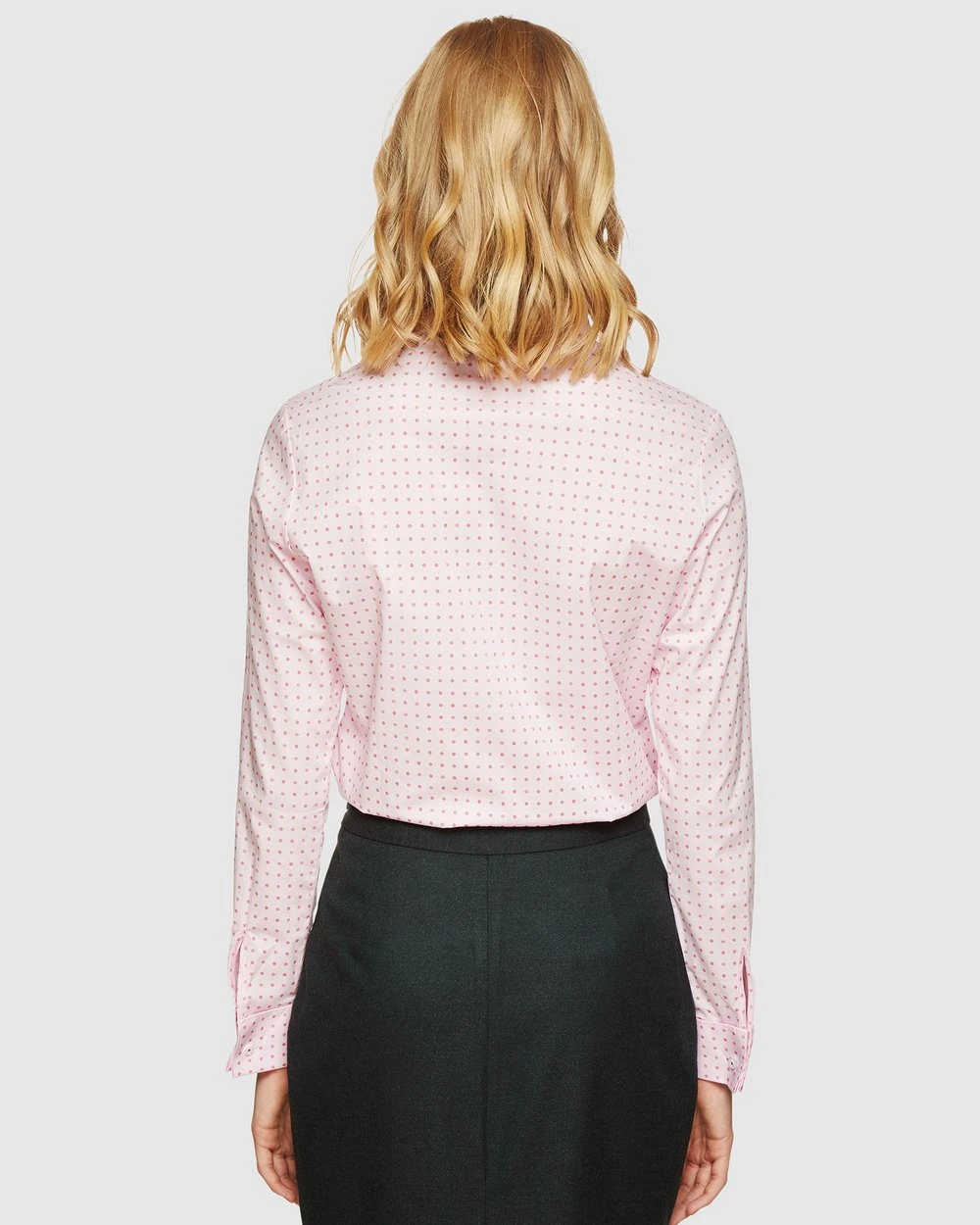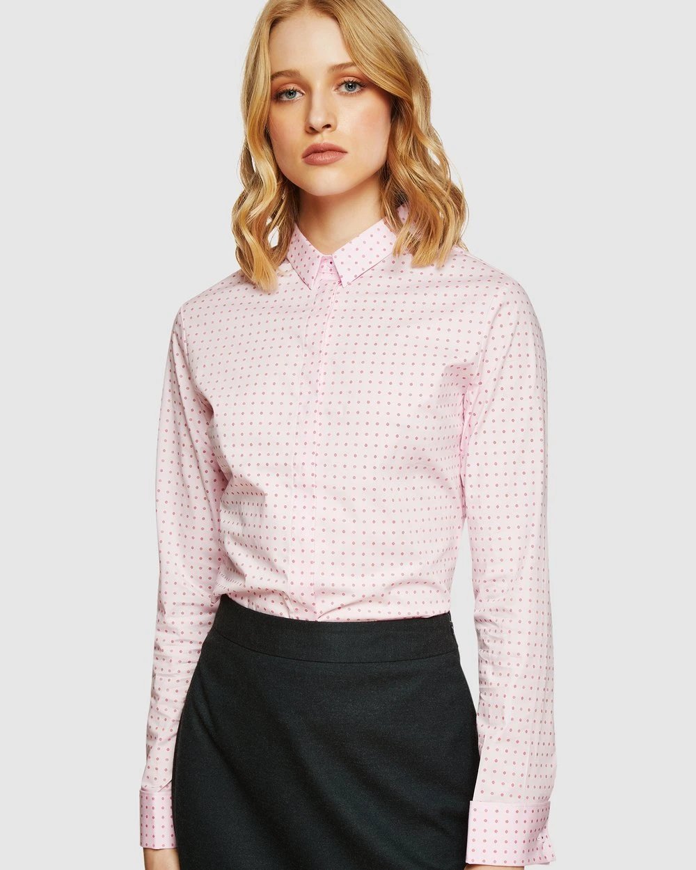 The Oxford Angel French Cuff Spot Stretch Shirt is a wardrobe essential. A classic piece for the office or a smart weekend look, it is crafted from a stretch cotton blend with a spot print and features a small collar, a concealed button placket and smart French cuffs. Wear it tucked into a classic pencil skirt with heels for a sharp office look.