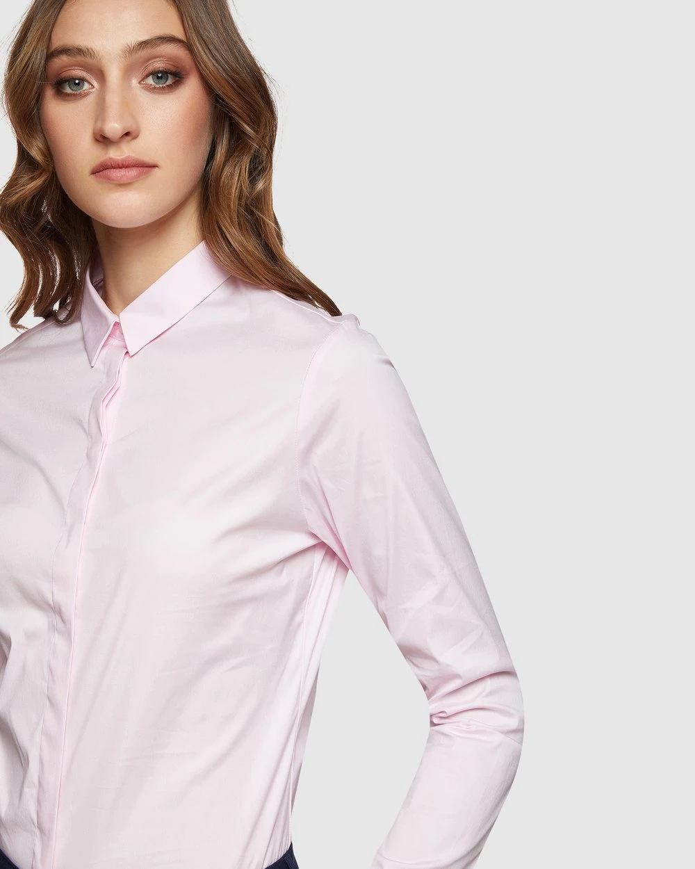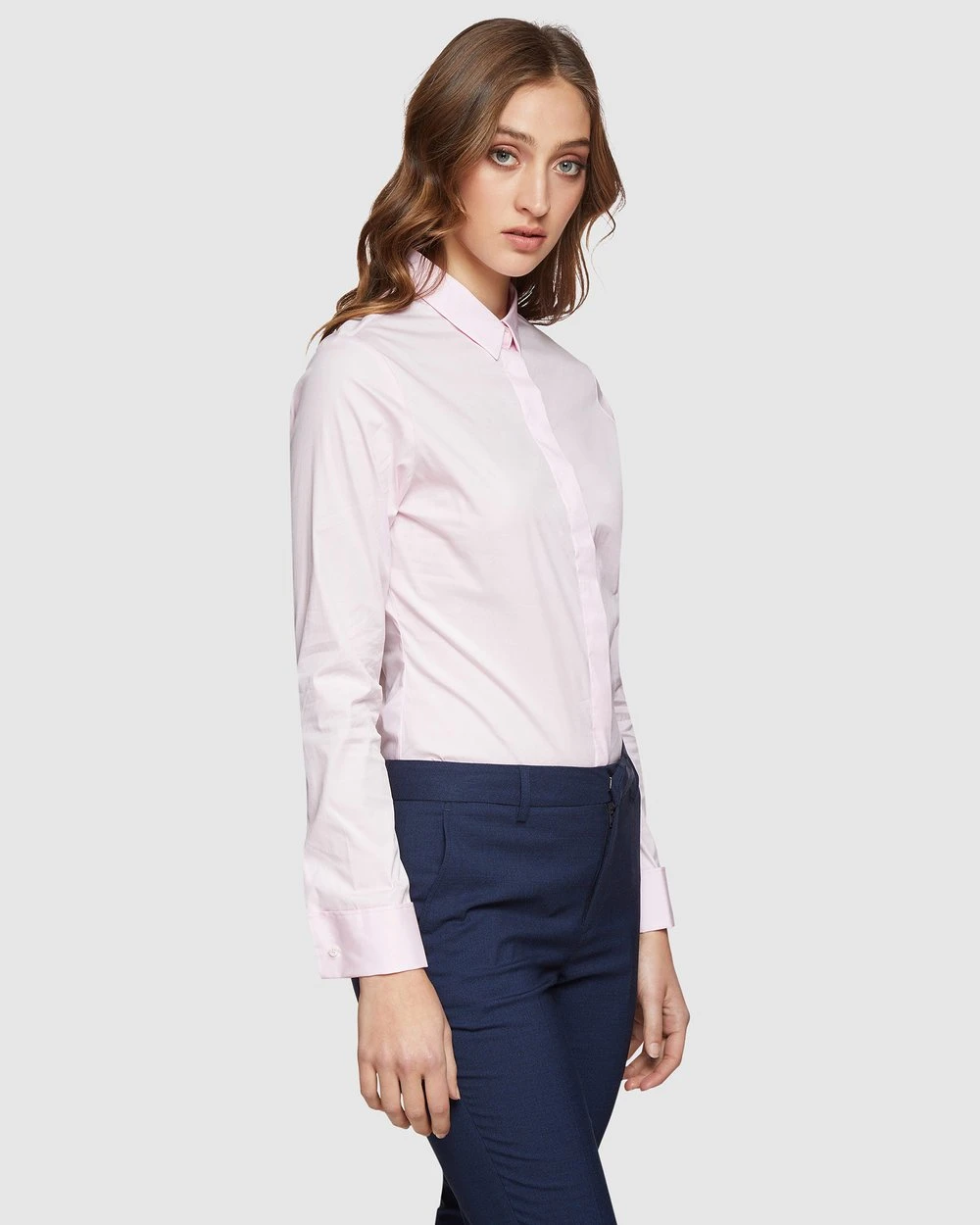 – Concealed button placket, single button cuffs