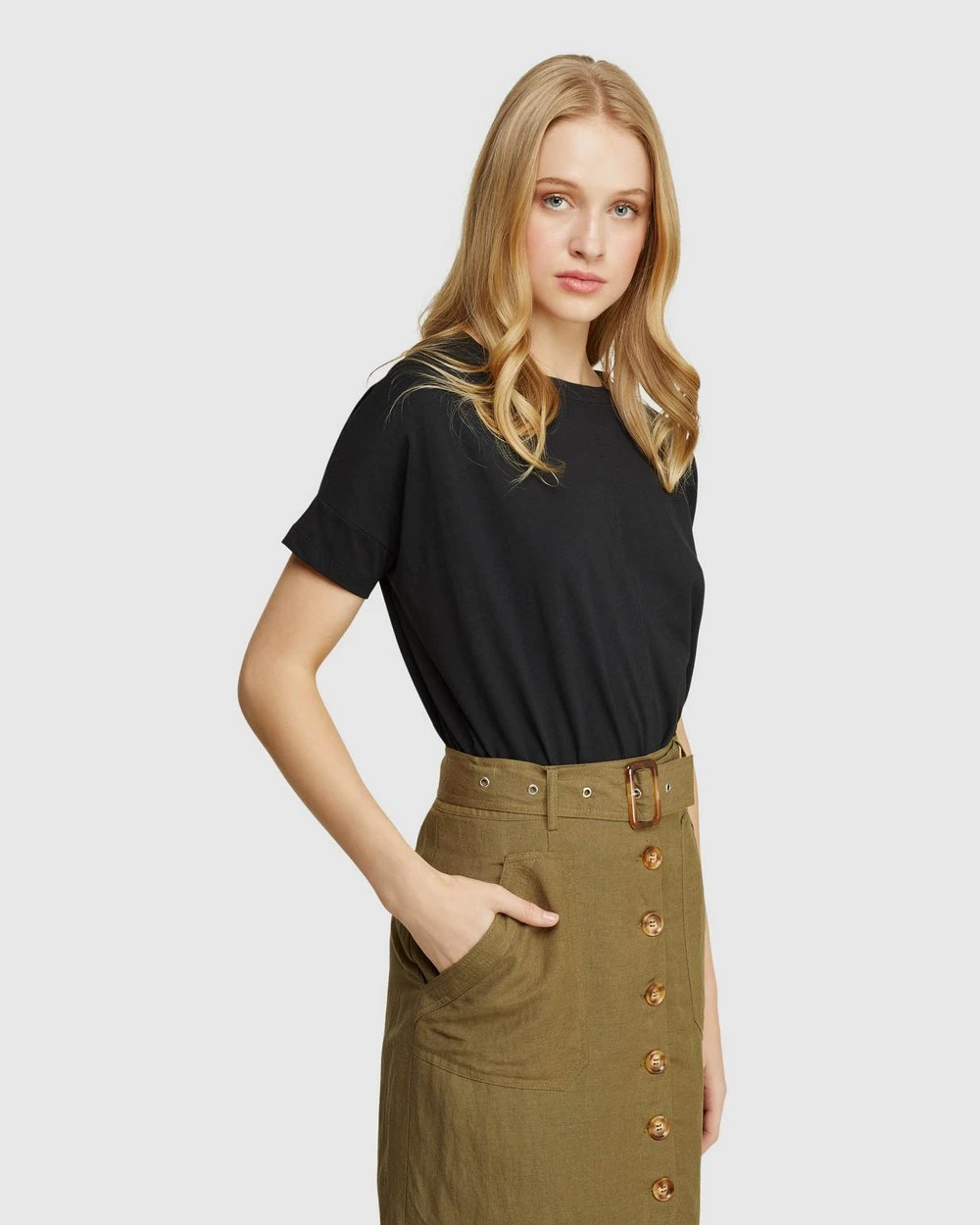 Length: 55cm (Size 8). Our model is wearing a size AU 8 top and usually takes a size 8. She is 178cm (5’84”) tall with an 81cm (32”) bust, a 63cm (25”) waist, and 86cm (34”) hips.