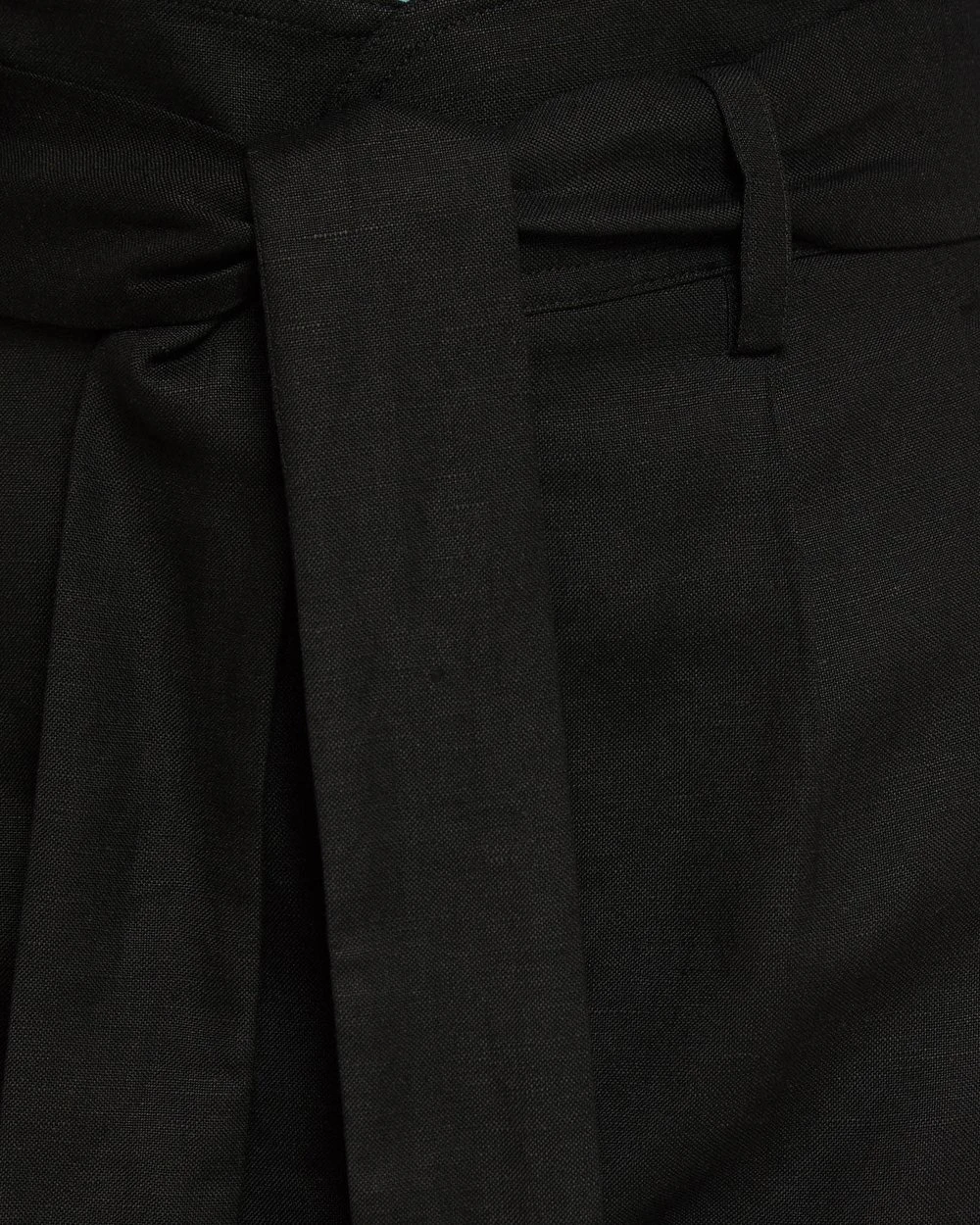 – High waisted, belted waist, side pockets, zip closure