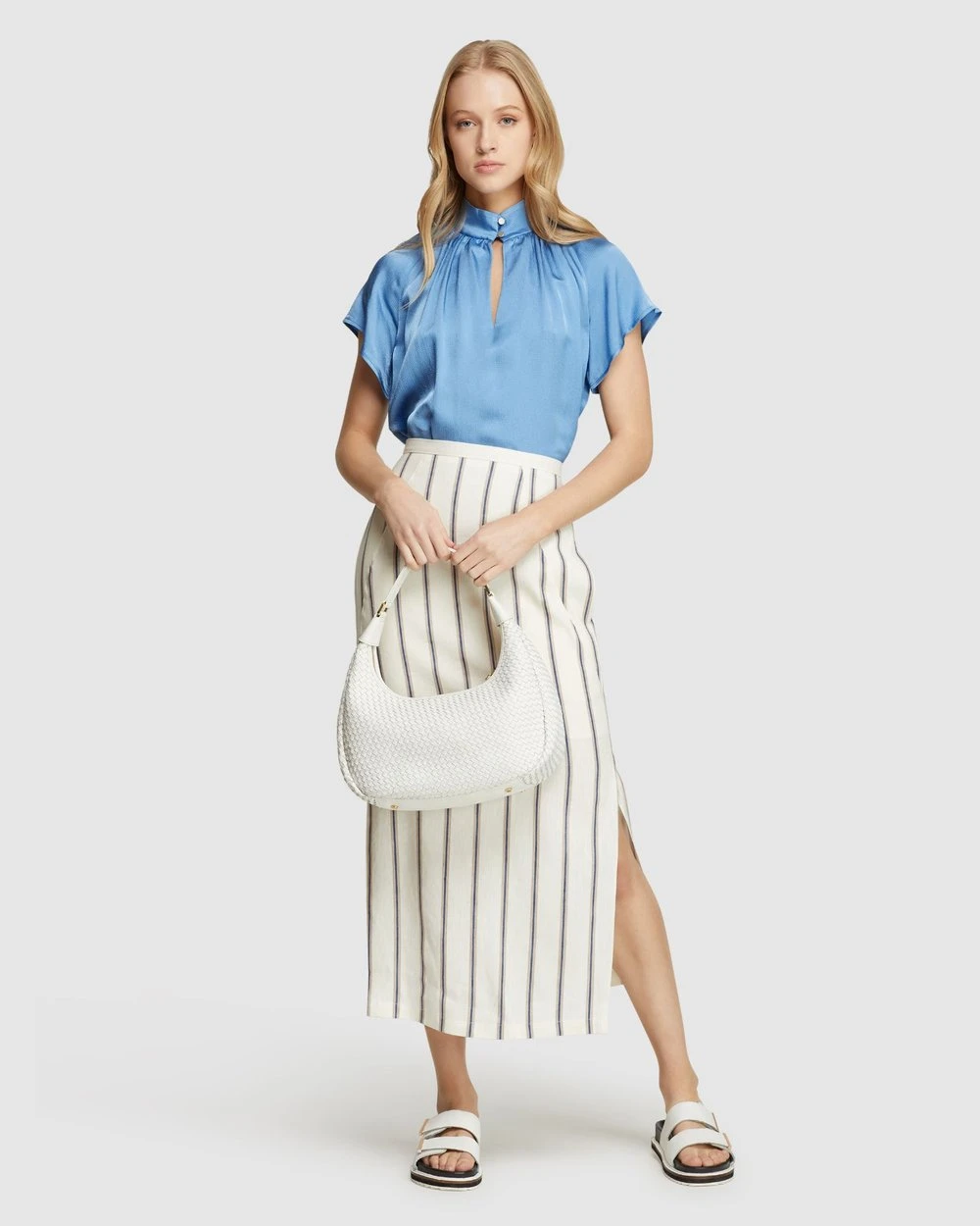 Length: 64cm. Our model is wearing a size AU 8 blouse and usually takes a size 8. She is 178 cm (5’84”) tall with an 81cm (32″) bust, a 63 cm (25″) waist and 86cm (34″) hips.