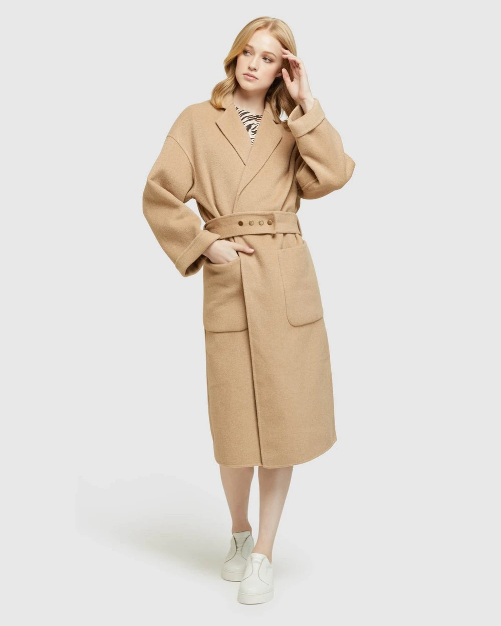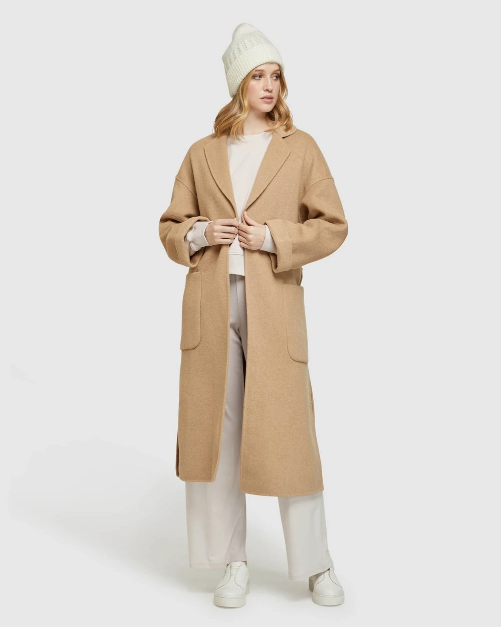 Contemporary winter style, the Ashley Coat by Oxford will be your go-to this season. This big cosy coat has an oversized fit and features a belted waistline with metallic buttons and side pockets.