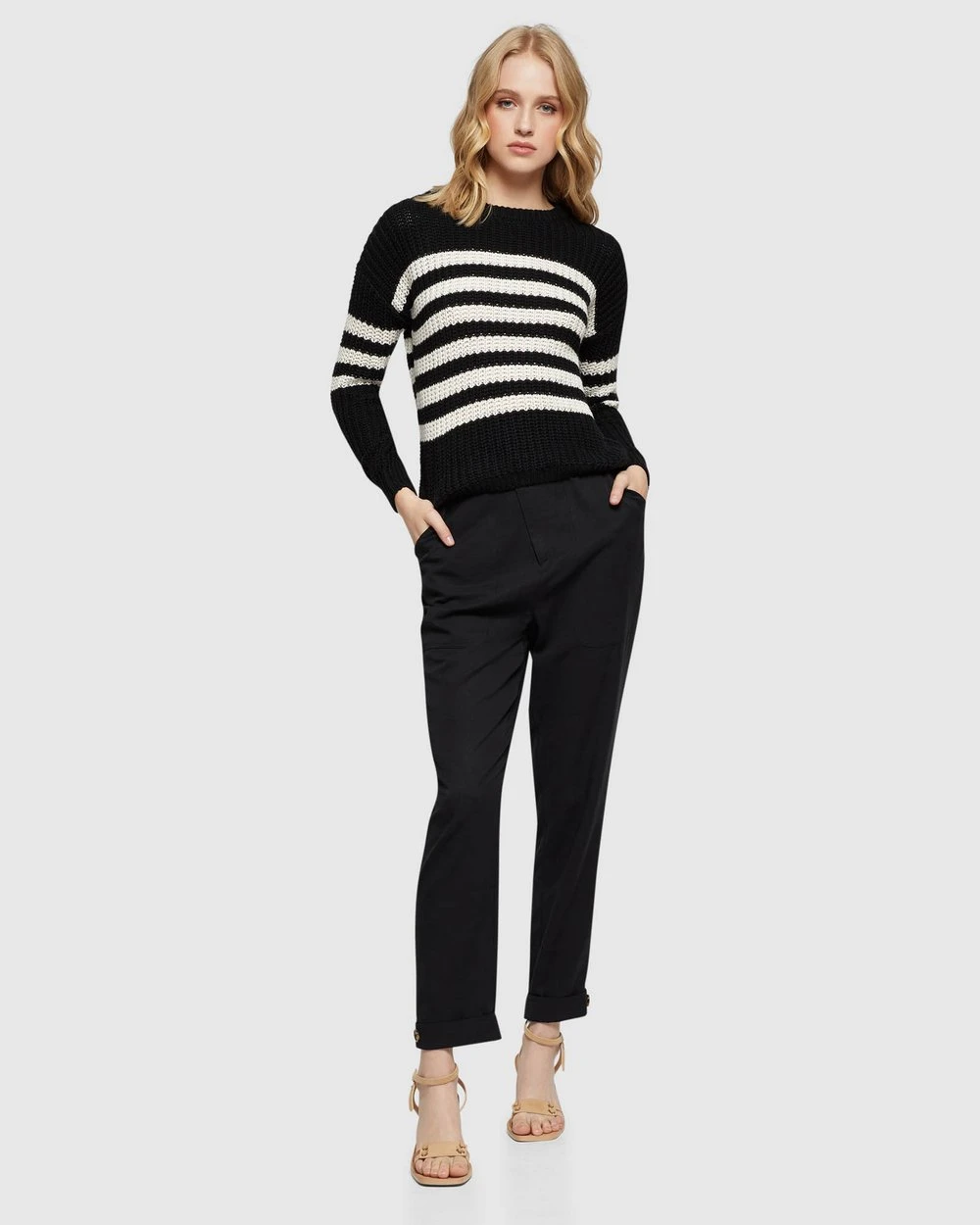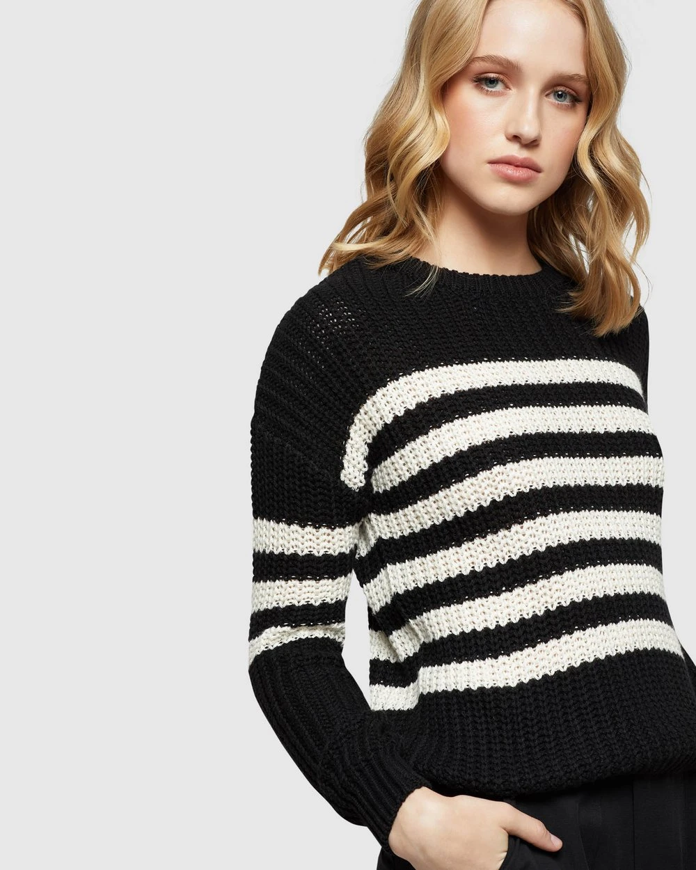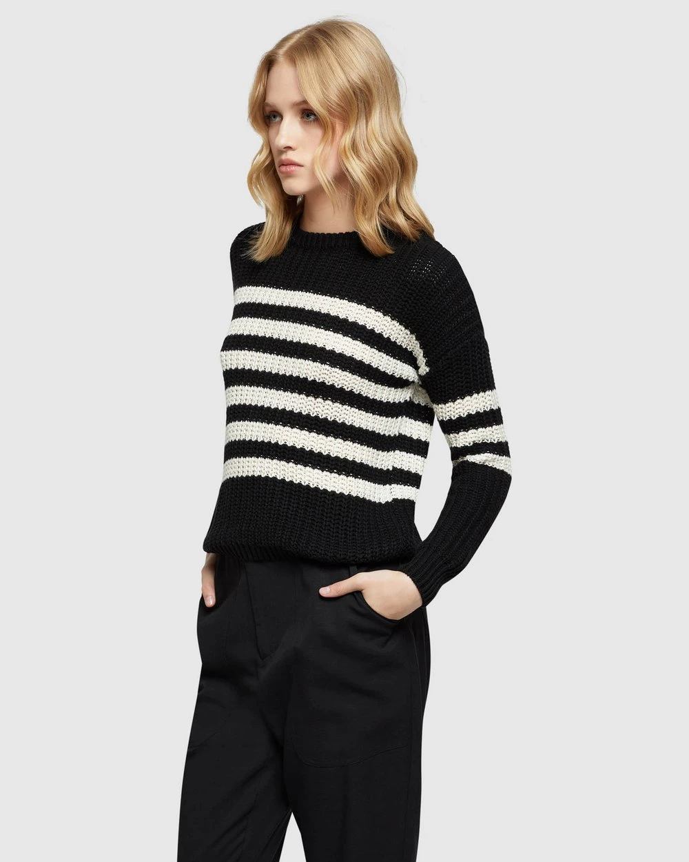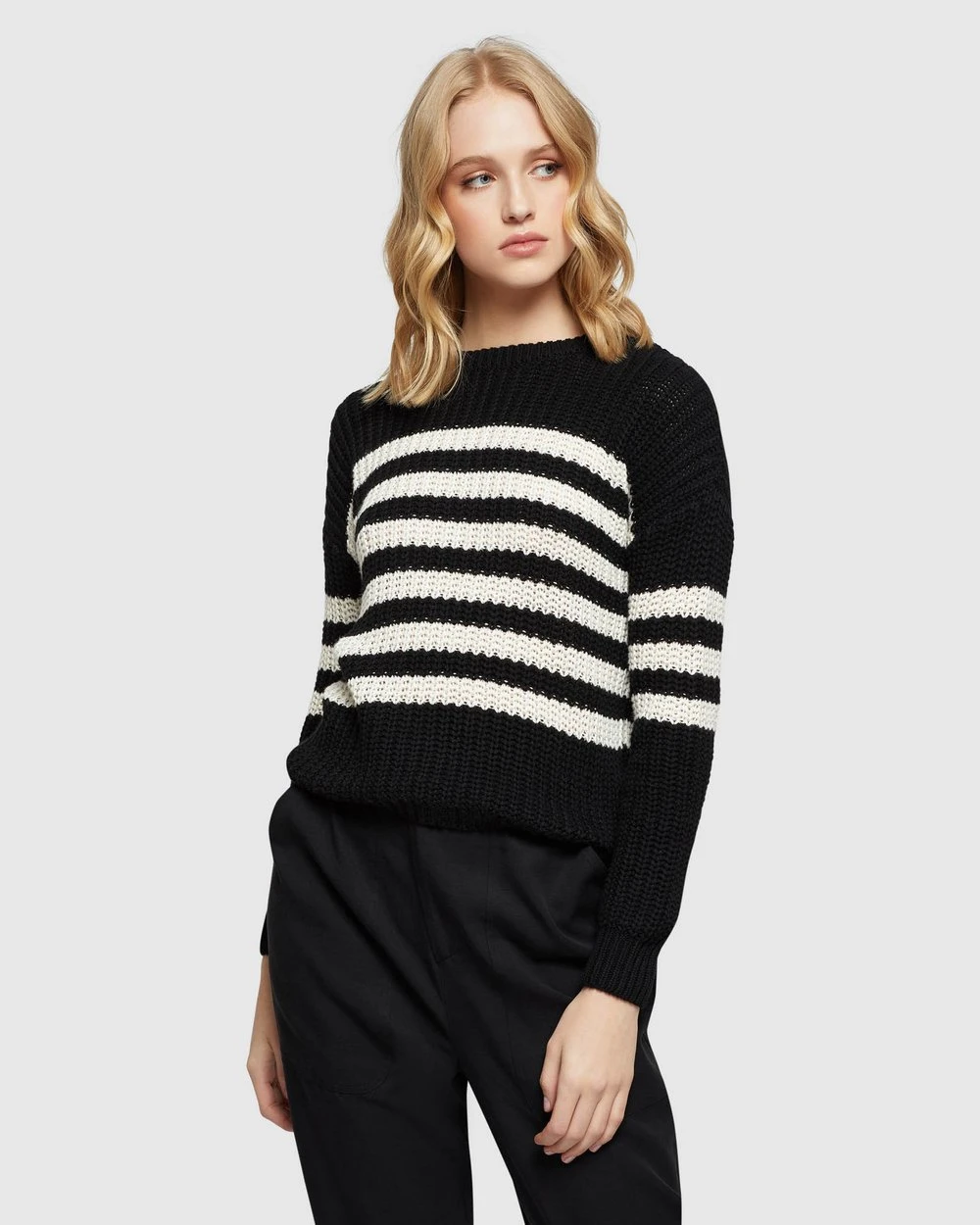 Update your casual collection with the Oxford Astrid Striped Knit. This relaxed fitting jumper is crated from a knitted weave and features a stripe pattern and ribbed trims. Team it with the San Diego Tencel Pants and heels to complete a smart casual look.