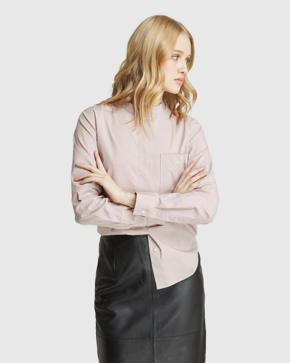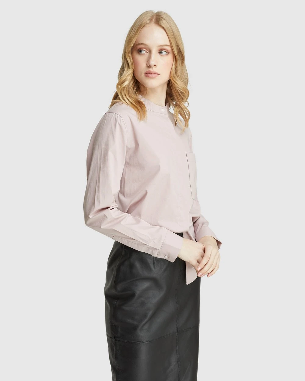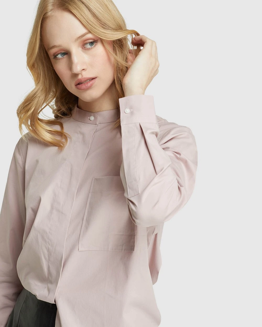 A modern feminine style, the Barcelona Patch Pocket Shirt by Oxford is a sleek look for work or play. Crafted from 100% cotton, this crisp white Shirt has a round collar, a large patch pocket on the chest and a hidden button placket.