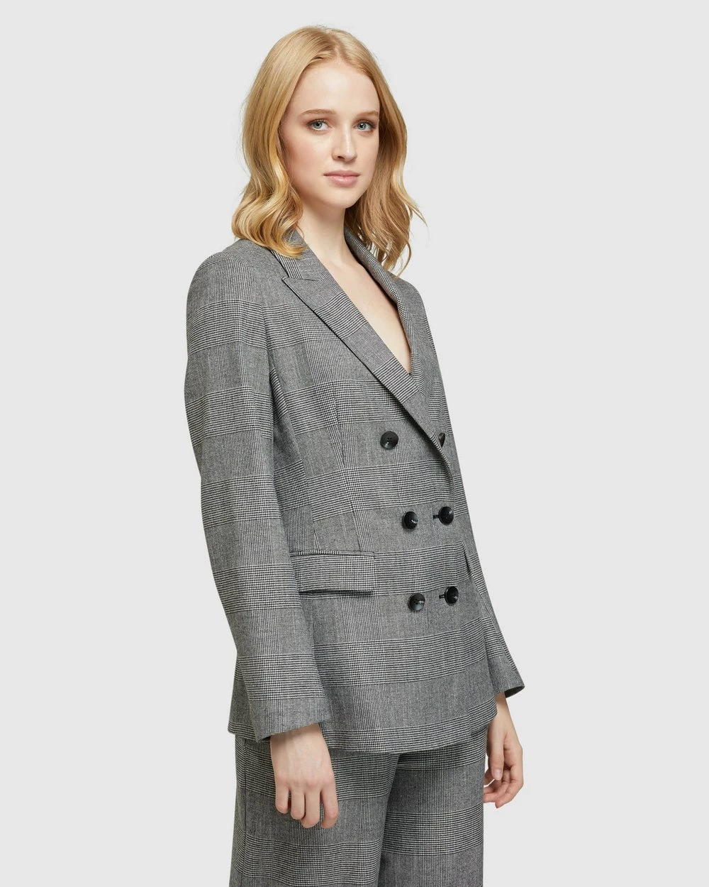 Update to your working wardrobe with the Billie Eco Checked Suit Jacket by Oxford. This double-breasted style is cut in a regular fit and crafted from a Carreman France recycled fabric in a classic check print.
