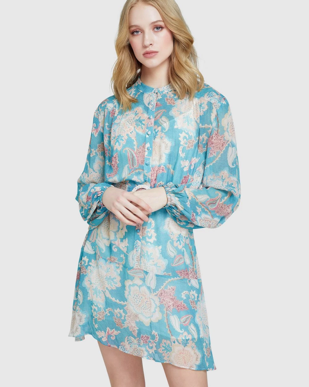 An elegant look with a retro feel, the Birkeland Green Floral Dress by Oxford is crafted from a sheer fabric in a gorgeous floral print and features long balloon sleeves with elastic cuffs.