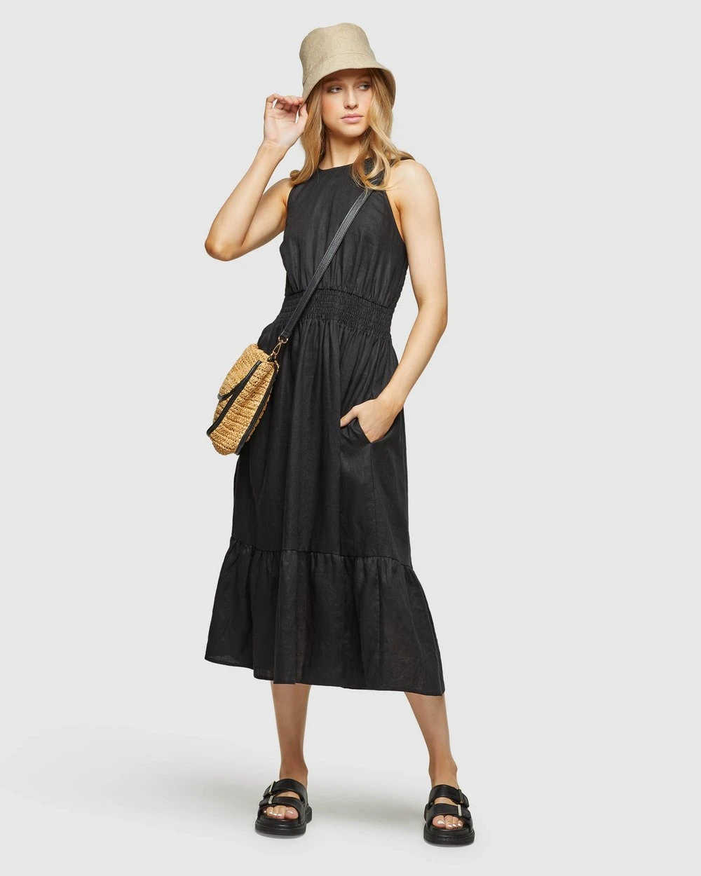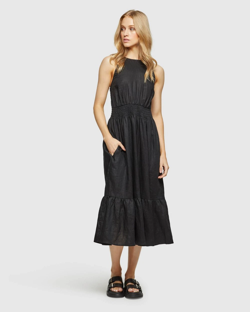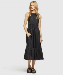 Oxford Cara Linen Dress Black