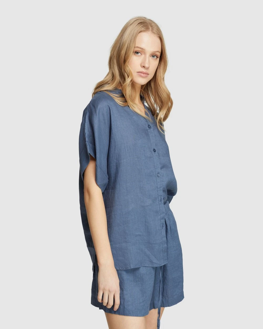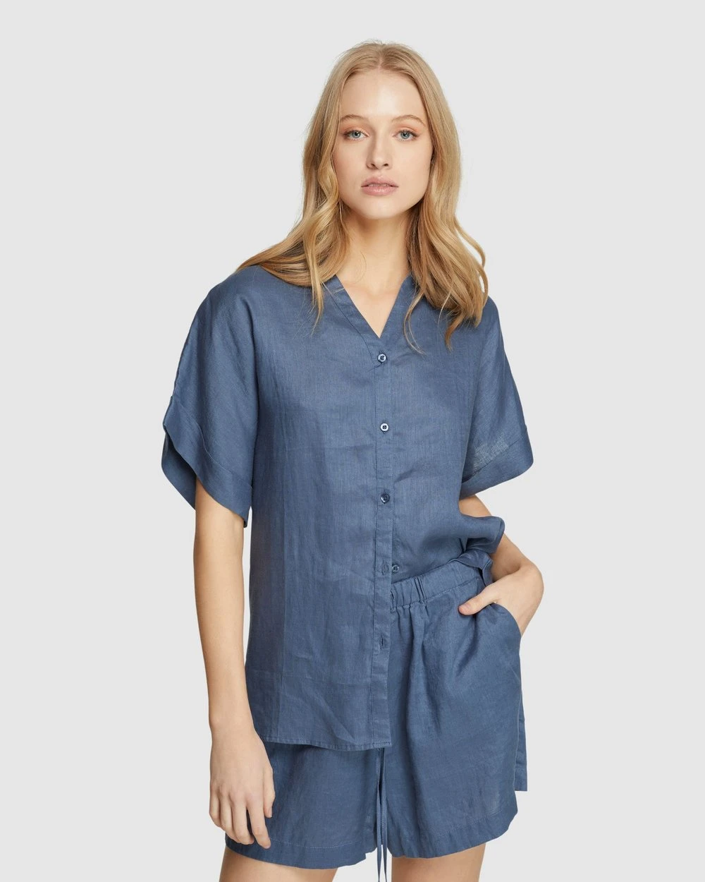 A smart leisure look, the Cara Pure Linen Shirt by Oxford is a versatile piece for the warmer months. This relaxed fitting top is crafted from 100% linen and features wide cuffed sleeves and a v-neckline.