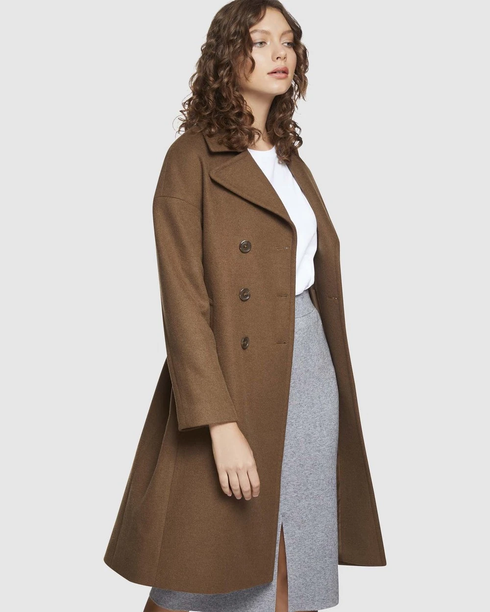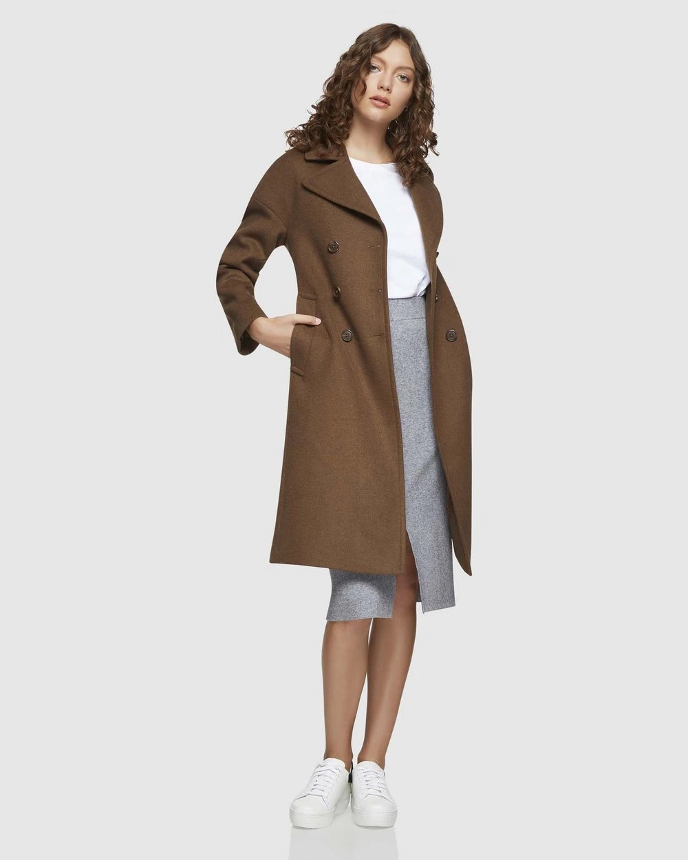A refined and elegant style, the Oxford Celia Coat will take you from work to play. In a gorgeous wintery brown hue, this long-line style features large lapels and a double breasted front with tortoiseshell buttons. This coat will look perfectly styled over a suit for work.
