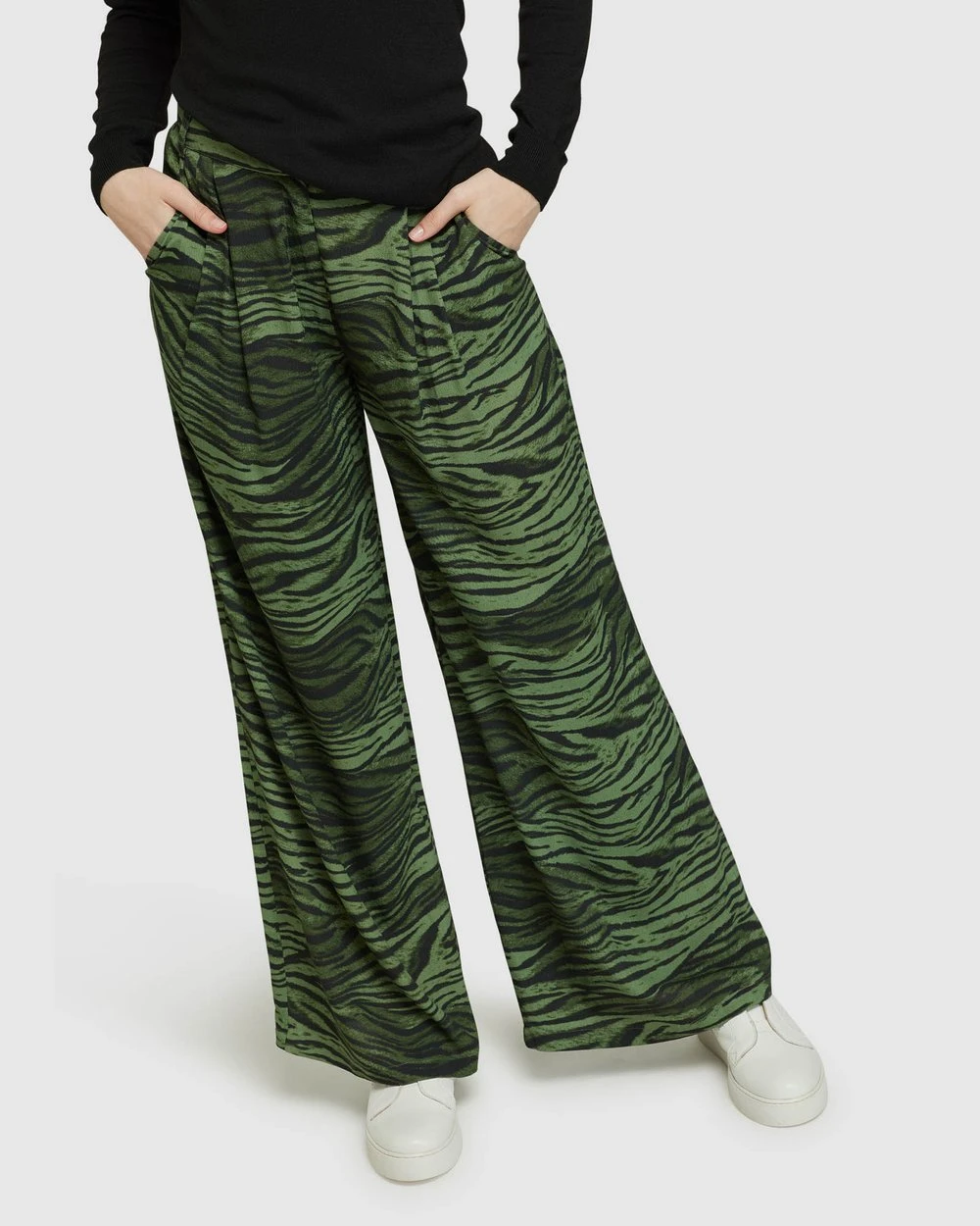 A strong look for the modern woman, the Chantel Animal Print Wide Leg Pants by Oxford will impress at work or play. These striking pants are crafted from a lightweight fabric and feature a wide leg, side pockets, belt loops and a zip closure.