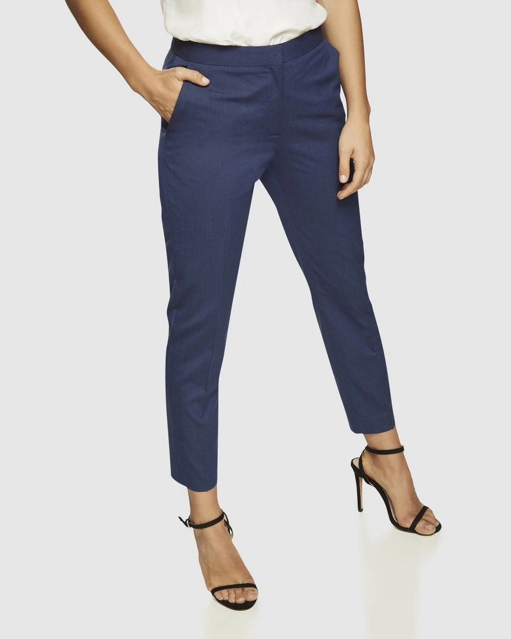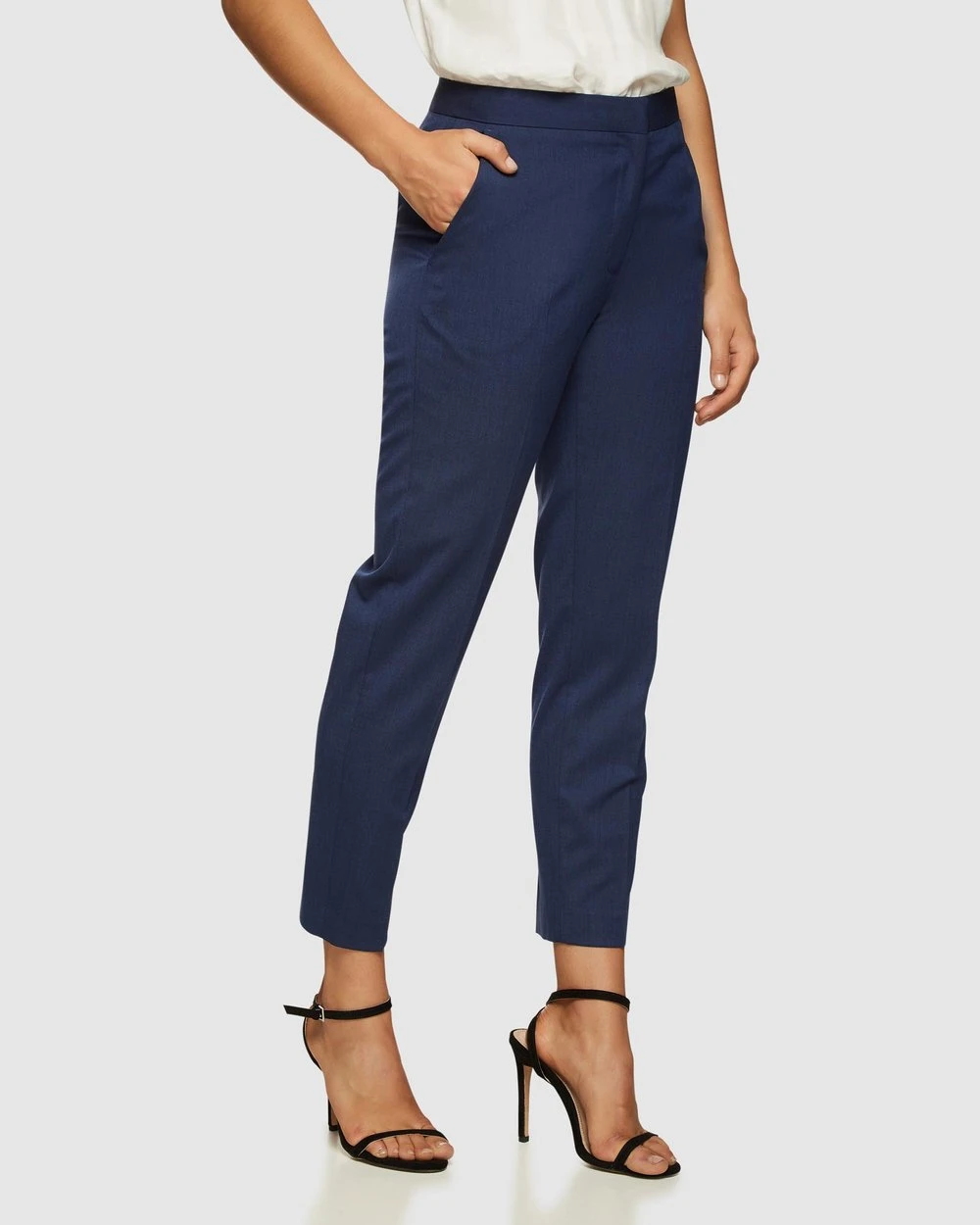 Elevate your working wardrobe with the Charla Eco Suit Trousers. Regular fitting and ultra-flattering, they feature a straight slightly tapered leg with cropped styling, two side pockets and zip fastening. This piece is part of our Oxford Eco Collection and is constructed from recycled polyester and viscose, the production of this garment reduces the impact of clothing manufacturing on the environment and its natural resources. For a sophisticated and chic look at the office, style yours with the matching jacket. Our model is wearing size AU 8 pants and usually takes a size 8. She is 175 cm (5’9”) tall with an 82cm (32.5”) bust, a 64 cm (25”) waist and 91cm (36”) hips.