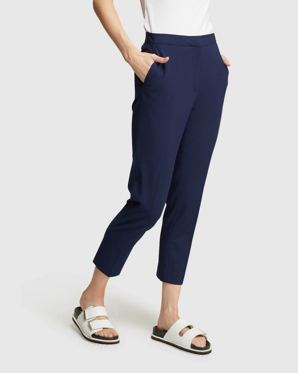 For timeless office style, add the Charla Eco Suit Trousers by Oxford to your professional collection. These women’s trousers are crafted from Eco Smart Carreman fabric that utilises recycled materials to create a high-quality and eco polyester. They are cut for a regular fit with a mid-rise and a slightly cropped, tapered leg.