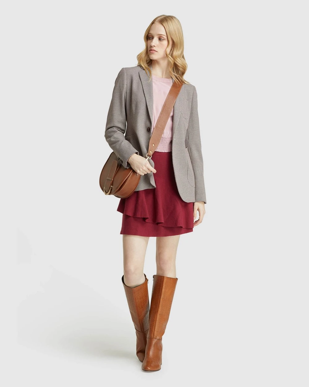 The Ciara Knitted Skirt by Oxford is a fun and flippy style with a super comfy fit. This slim-fit skirt is crafted from a cosy stretch knit and features a front wrap with a diagonal cut and flippy style.