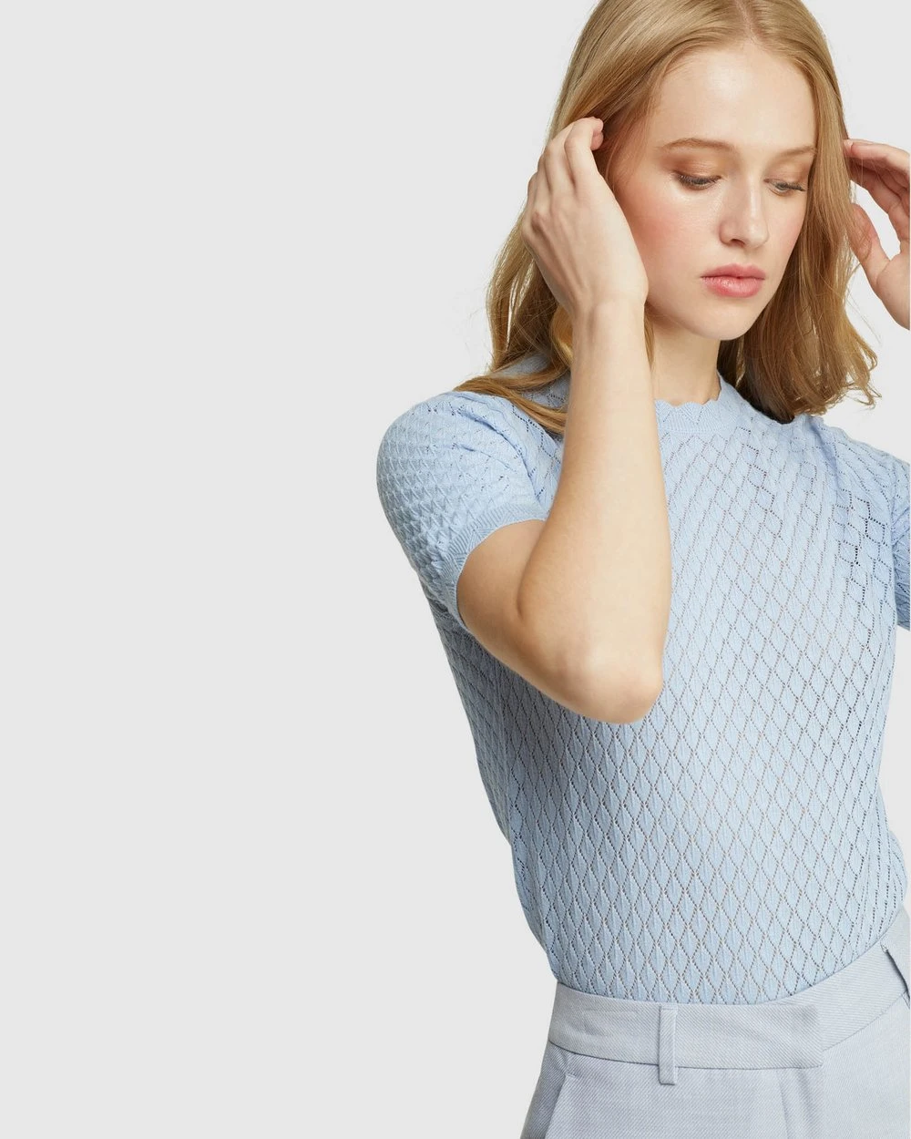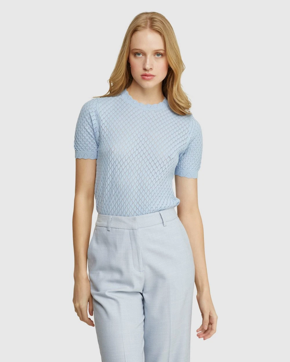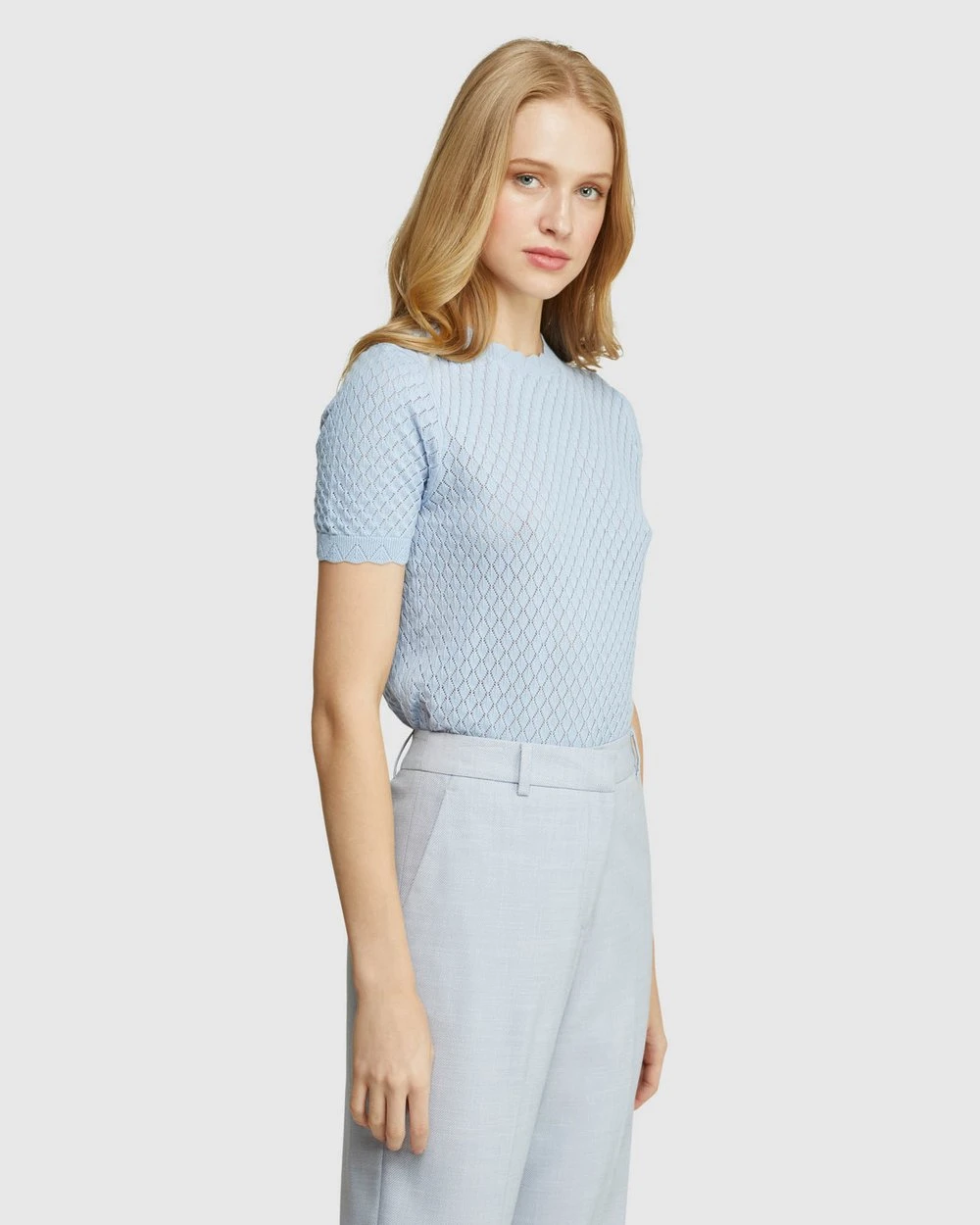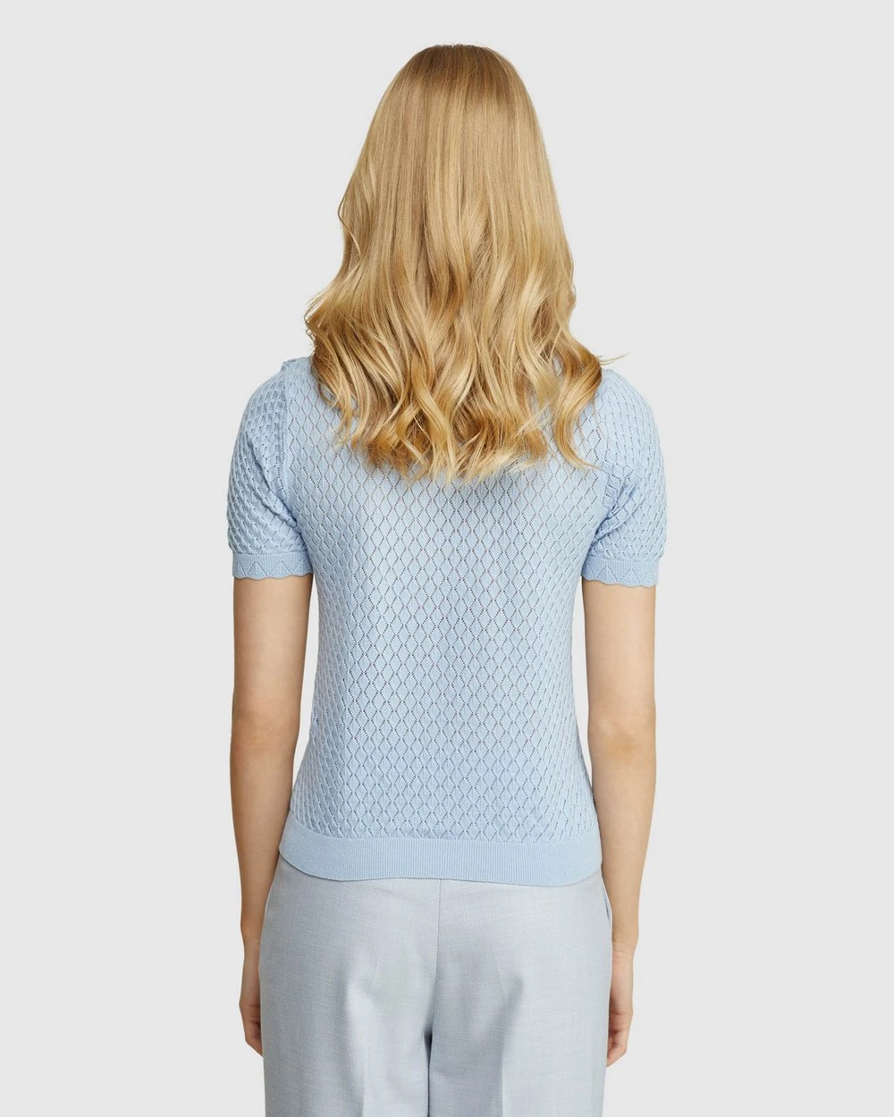 Oxford Eden Pointelle Knit Soft Blue