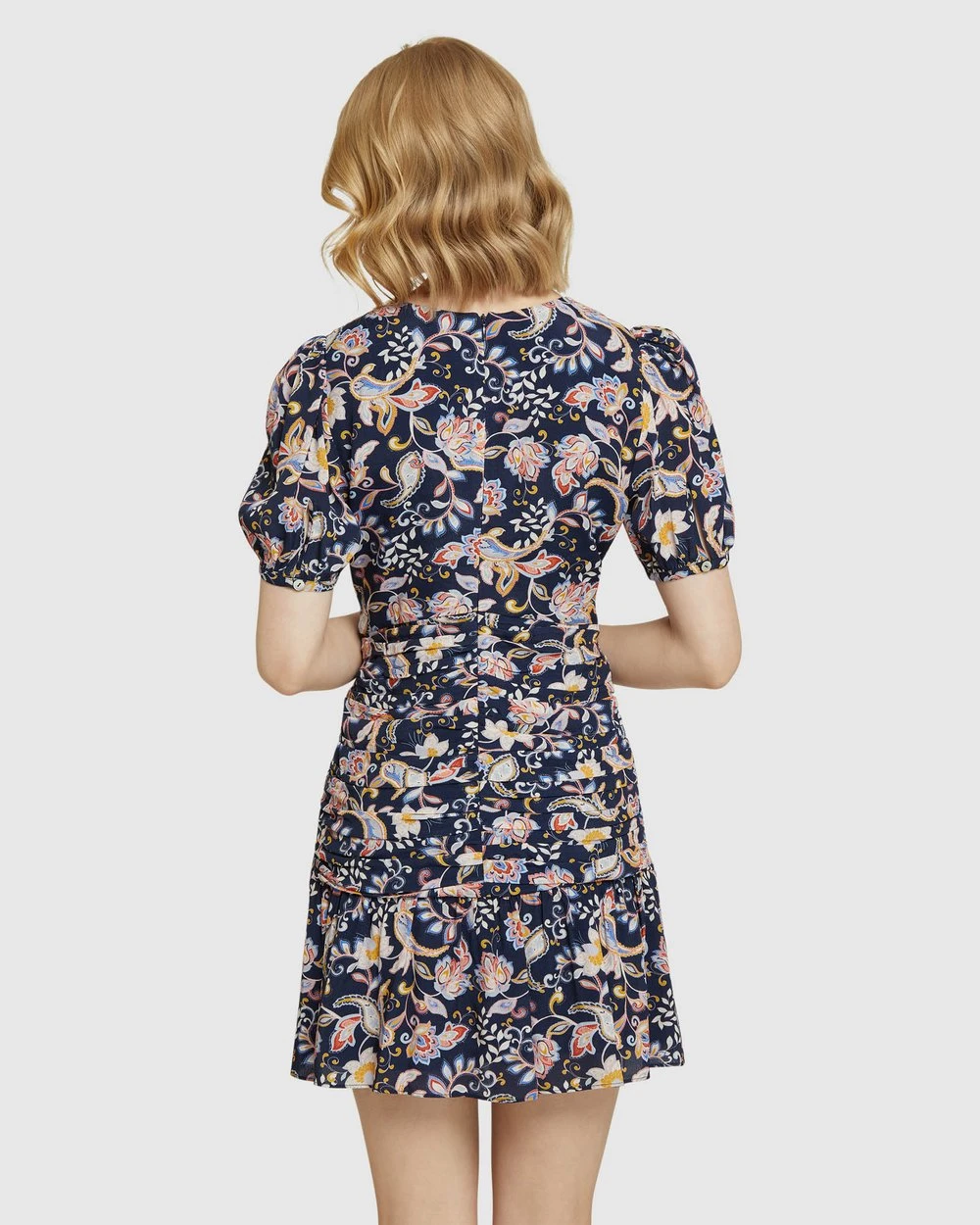 A gorgeous summer style, the Eliza Floral Dress by Oxford features a pleated bodycon waist with a floral print and bubble sleeves.