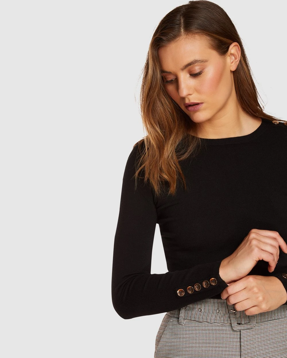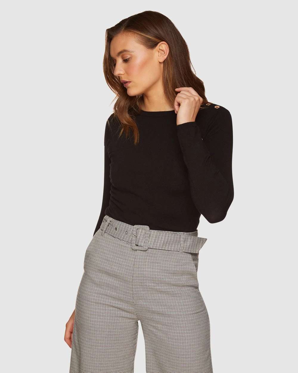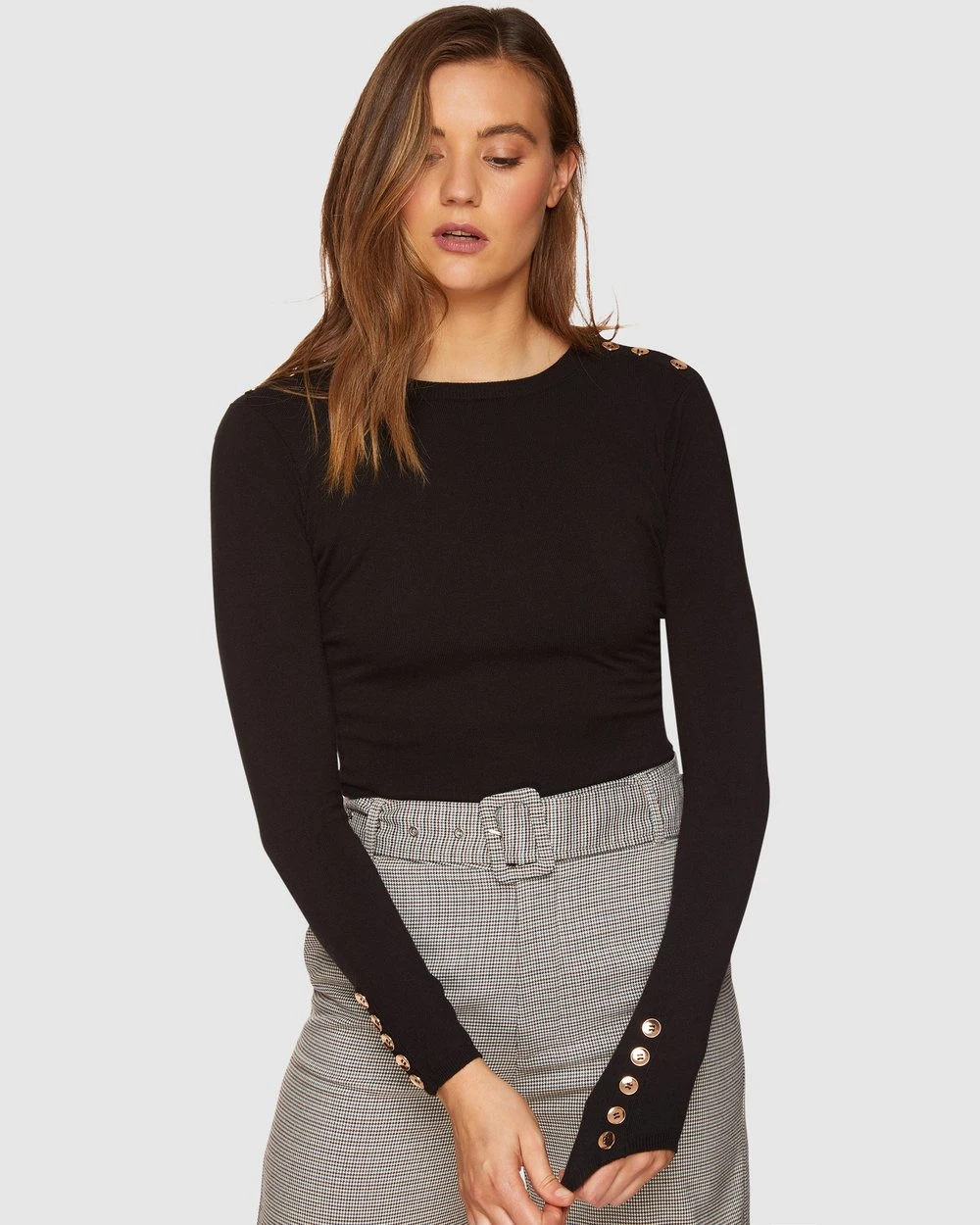 A basic with a difference, the Oxford Emma Button Knit is an eye-catching staple, perfect for the cooler months. This pared back style is crafted from a soft knitted fabric and features metallic buttons though the sleeves and shoulders. For an effortless office look, just wear it with culottes and heels.