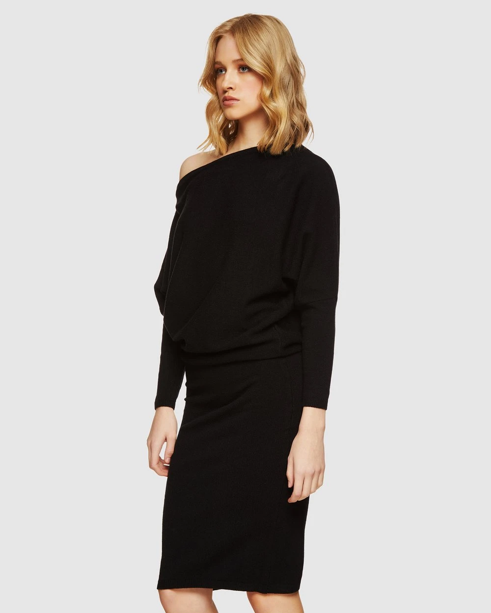 An elegant and versatile style, the Oxford Emma Boatneck Knitted Dress will take you from desk to dinner. Crafted from a knitted blend in a close fit, it gathers at the waist for a super flattering cut and features a wide boat style neckline that sits off the shoulder with long sleeves and ribbed cuffs. Just add your favourite boots and leather accessories for an effortless and elegant look.