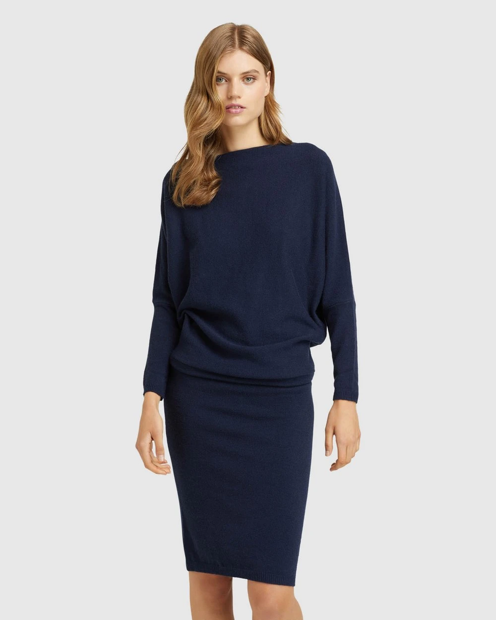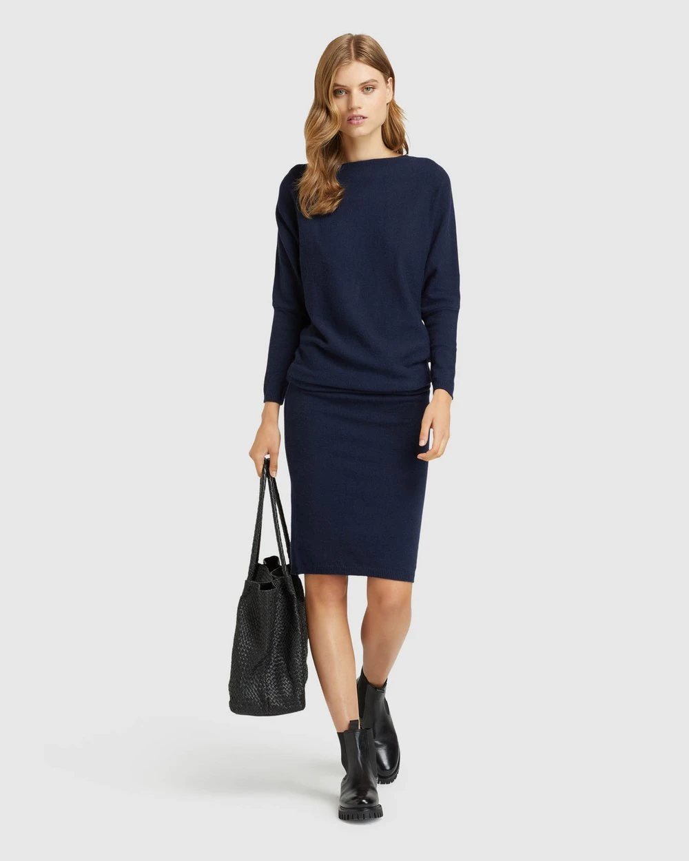 You’ll love the Emma Knitted Dress by Oxford for work or play. This close-fitting rib knit dress is a comfortable and stylish option for your winter style. It has a fitted waistline with a drapey top and wide neckline that can be worn on or off the shoulder.