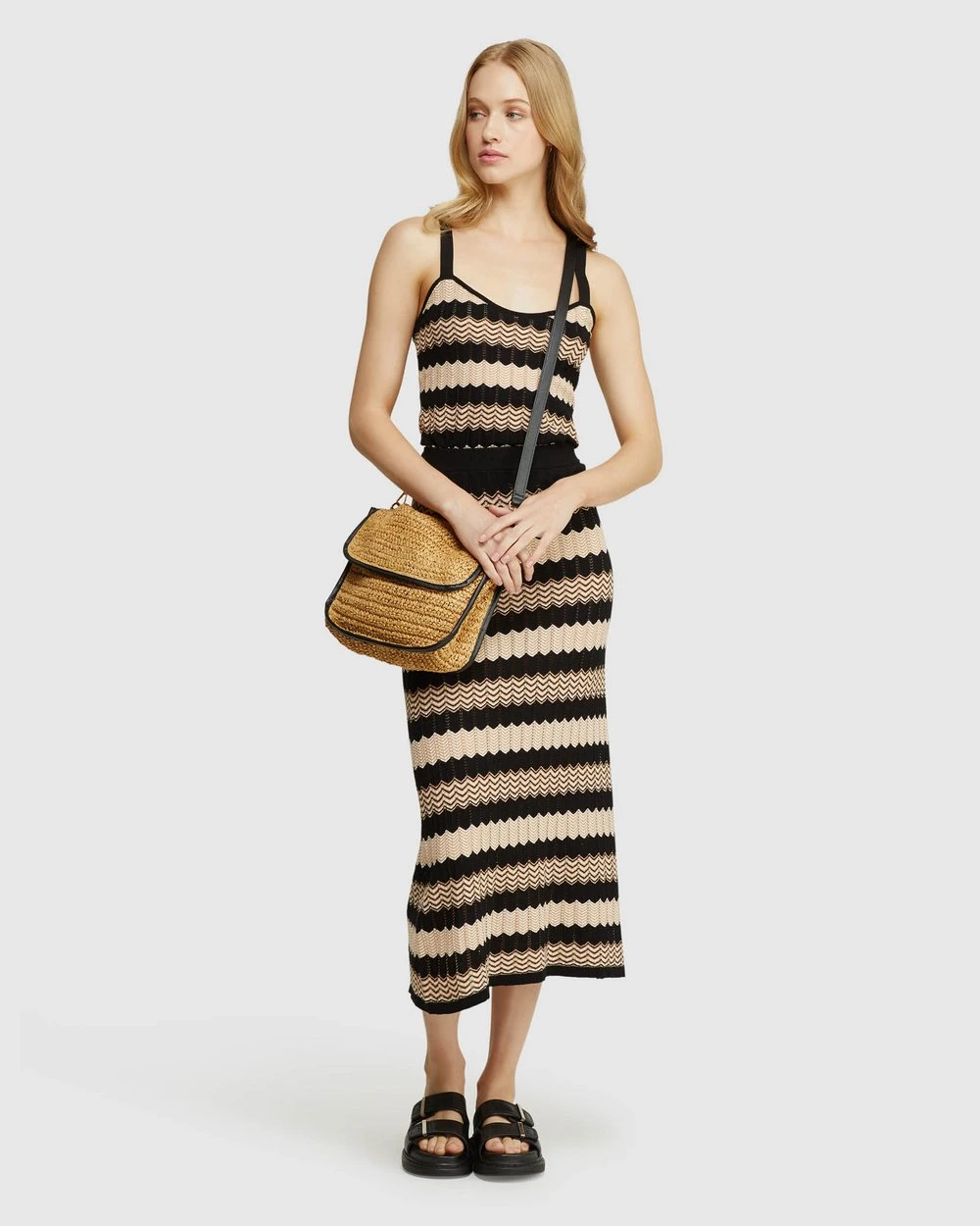 Oxford Estelle Pointelle Skirt Black/Camel
