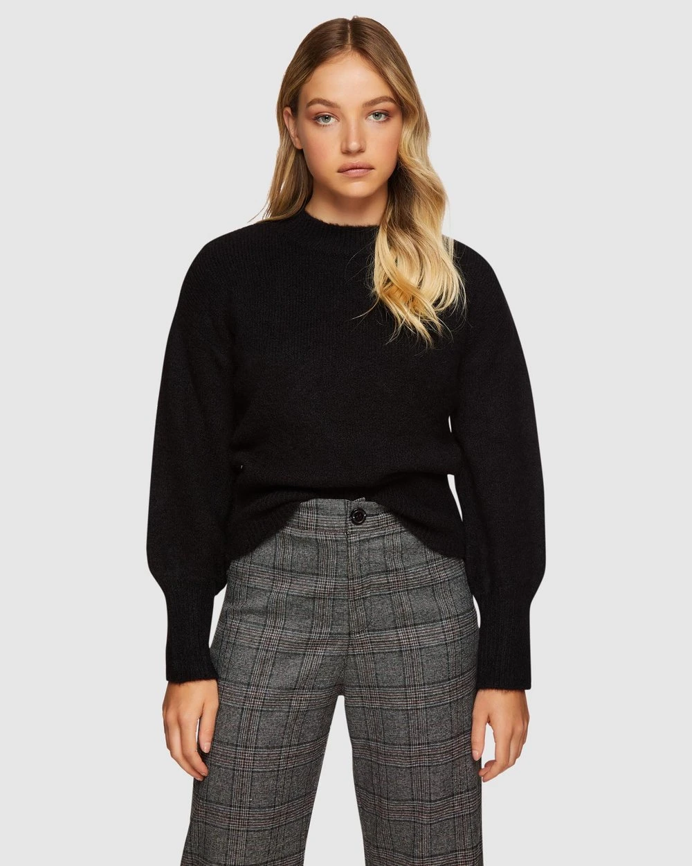 A winter essential, the Oxford Eva Soft Knit will keep you feeling cosy and looking chic.This relaxed fit style is crafted from a super soft weave and features large ribbed trims, a crew neckline and subtle ballooned sleeves. Style it for work or the weekend with some high-waisted pant and boots.